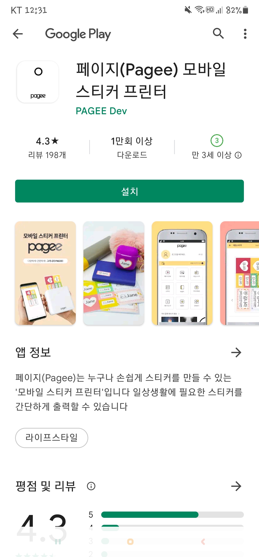 구글플레이에서 '페이지 모바일 스티커 프린터' 어플을 다운받아서