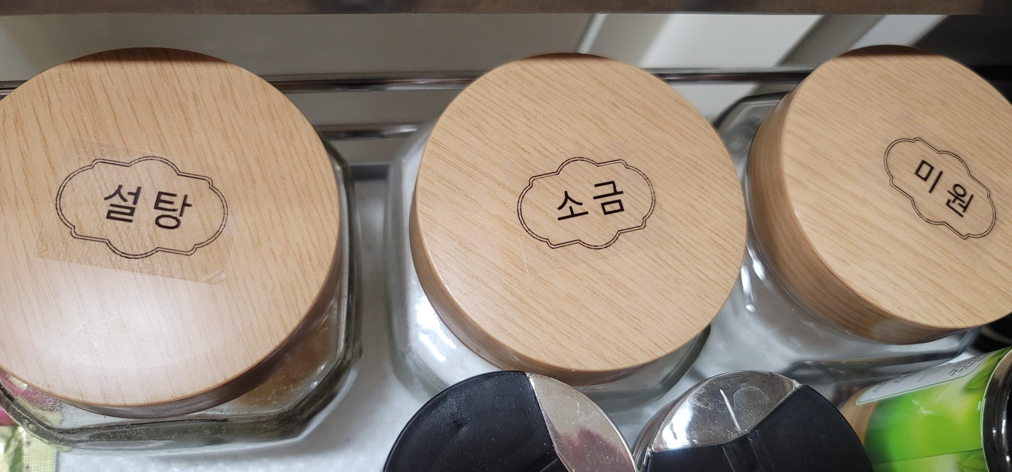 이번엔 내가 어플 내 에디터로 직접 양념통 라벨 스티커를 만들어보았다.