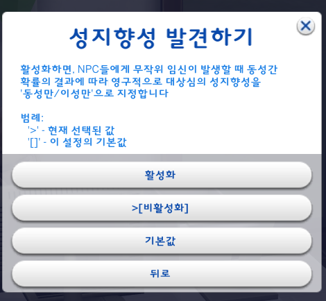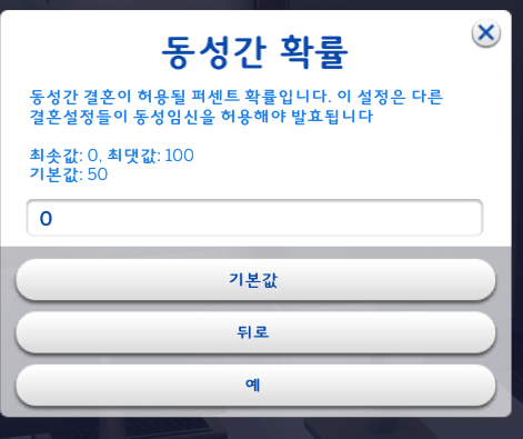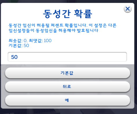 다른 설정들이 동성임신을 허용해야 적용되기 때문에 동성임신 설정을 안했다면 건드리지 않아도 된다.