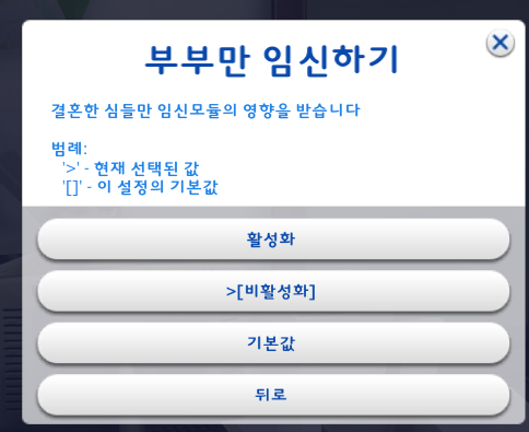 1-6. 부부만 임신하기 - 활성화 / 비활성화 선택