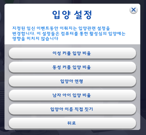 입양과 관련된 설정은 이 카테고리에서 설정하면 된다.