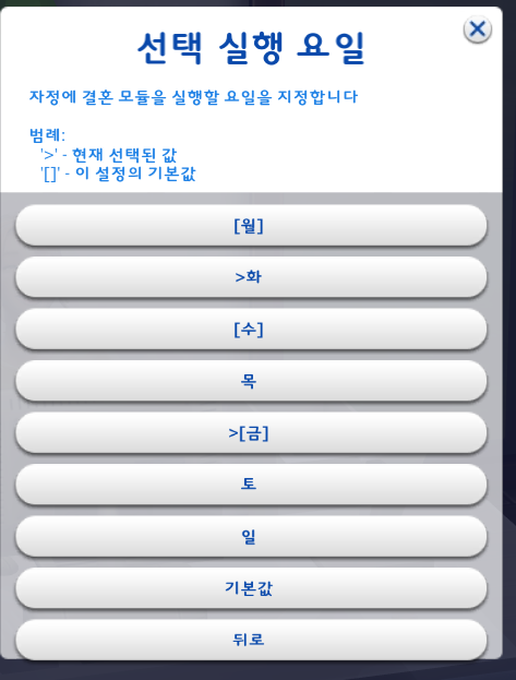 1-2. '선택 실행요일'을 클릭 - 원하는 임신 실행 요일 설정