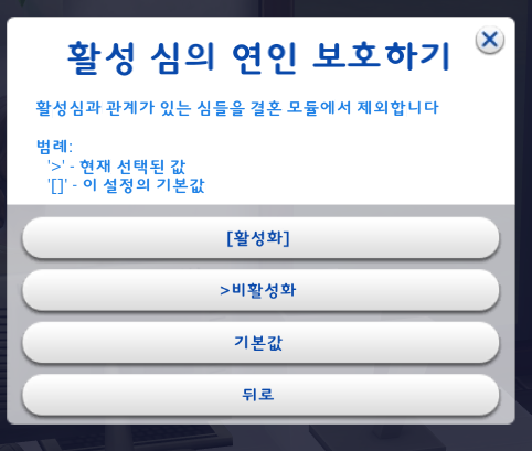 노숙자 심들을 내가 아끼는 마을 심들과 결혼시킬 순 없지!!! → 비활성화