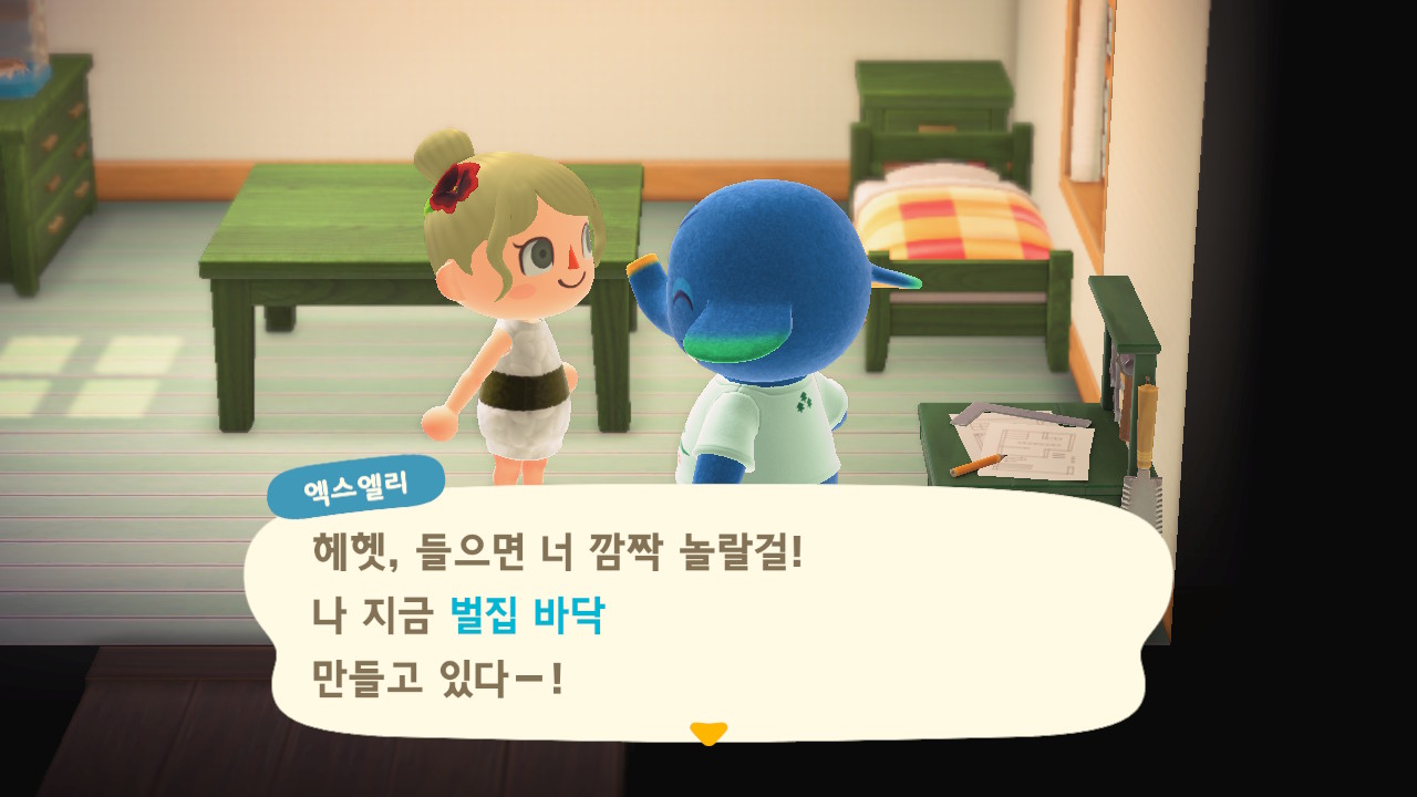 DIY 열심히 하고 있는 주민에게 말을 걸면 무언가의 레시피를 받을 수 있다.