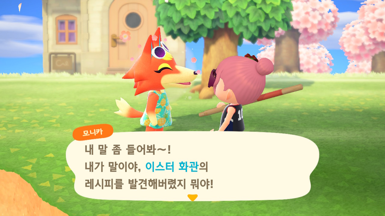 앗!!! 그리고 이스터 레시피를 동물 주민이 띠링~! 하고 다가와서 주기도 한다 :)