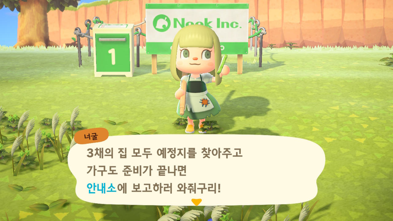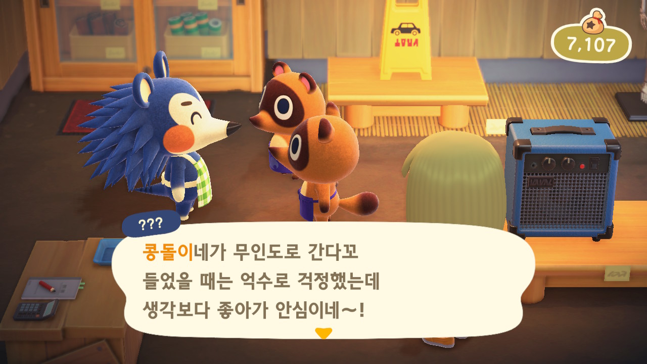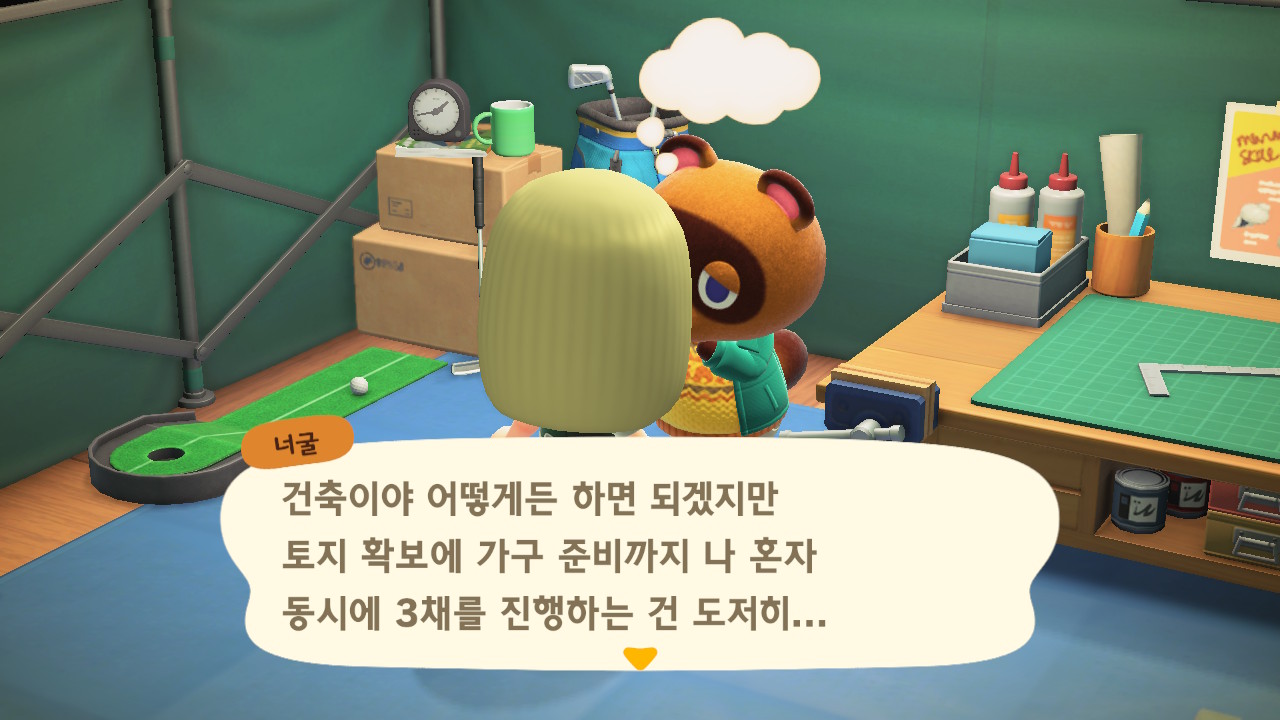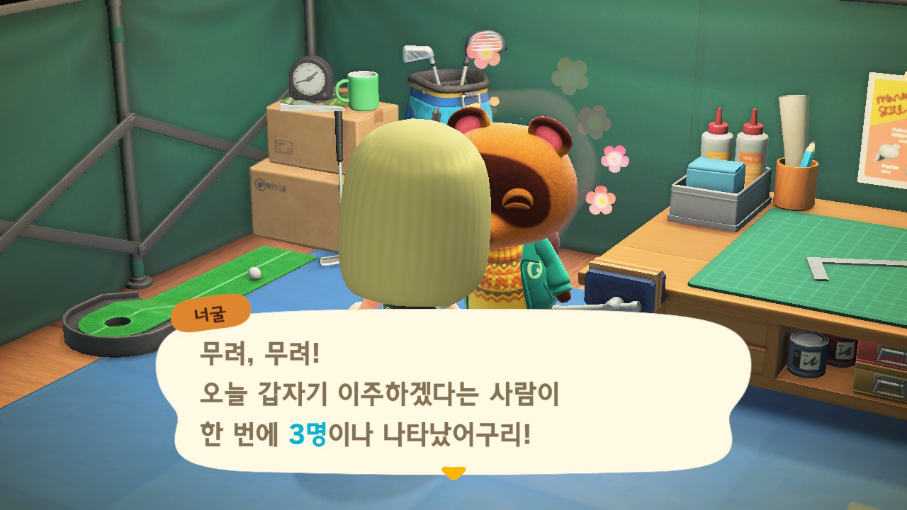 내부와 외부에 가구 18개까지 다 넣고 안내소에 가고 나면 자동으로 너굴이와 대화가 되면서 ㅠㅠ