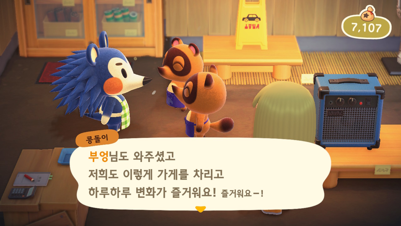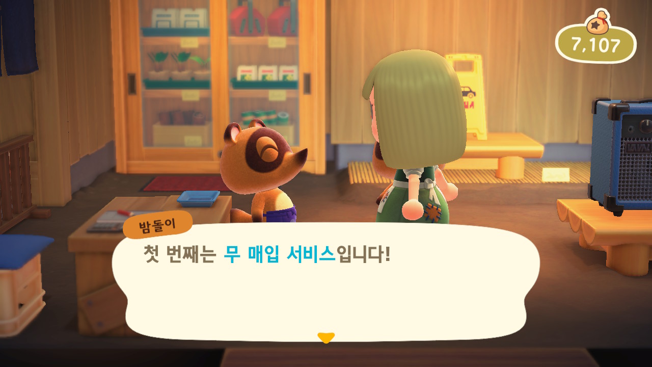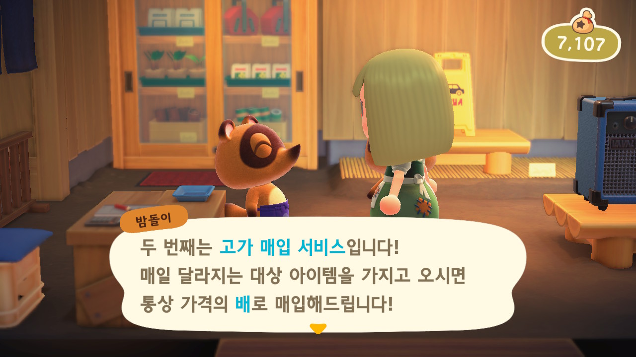너굴 상점이 오픈되어서 받을 수 있게 되는 서비스들을 친절히 설명해준다.