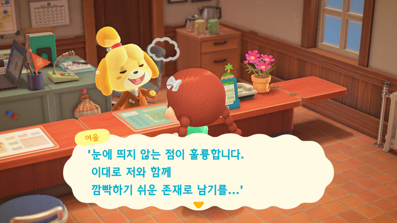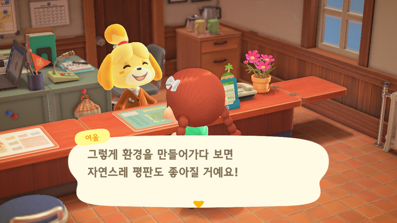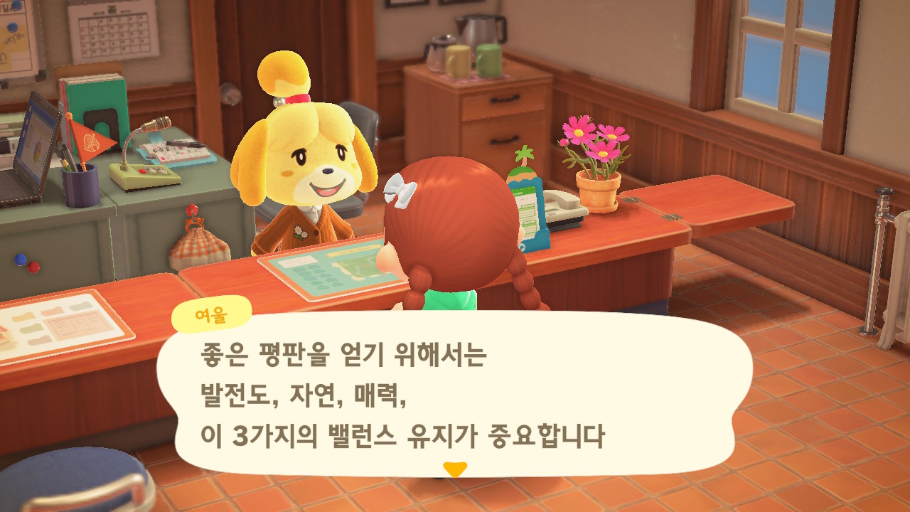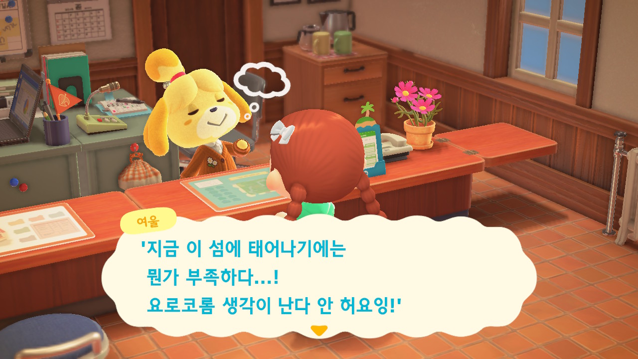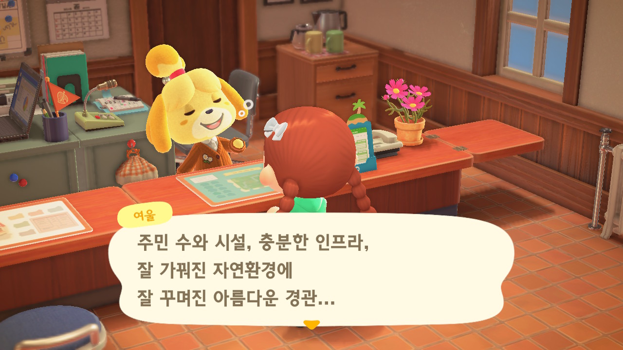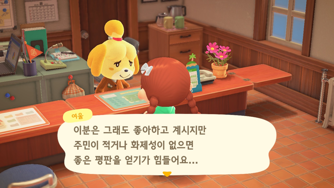 아직 주민들이 이사를 오지 않아서 여울이가 '주민을 늘려라' 하고 조언을 해주는 것 같다.
