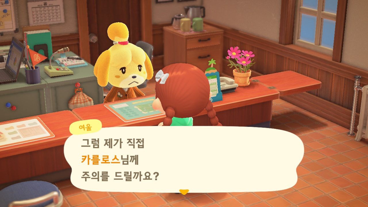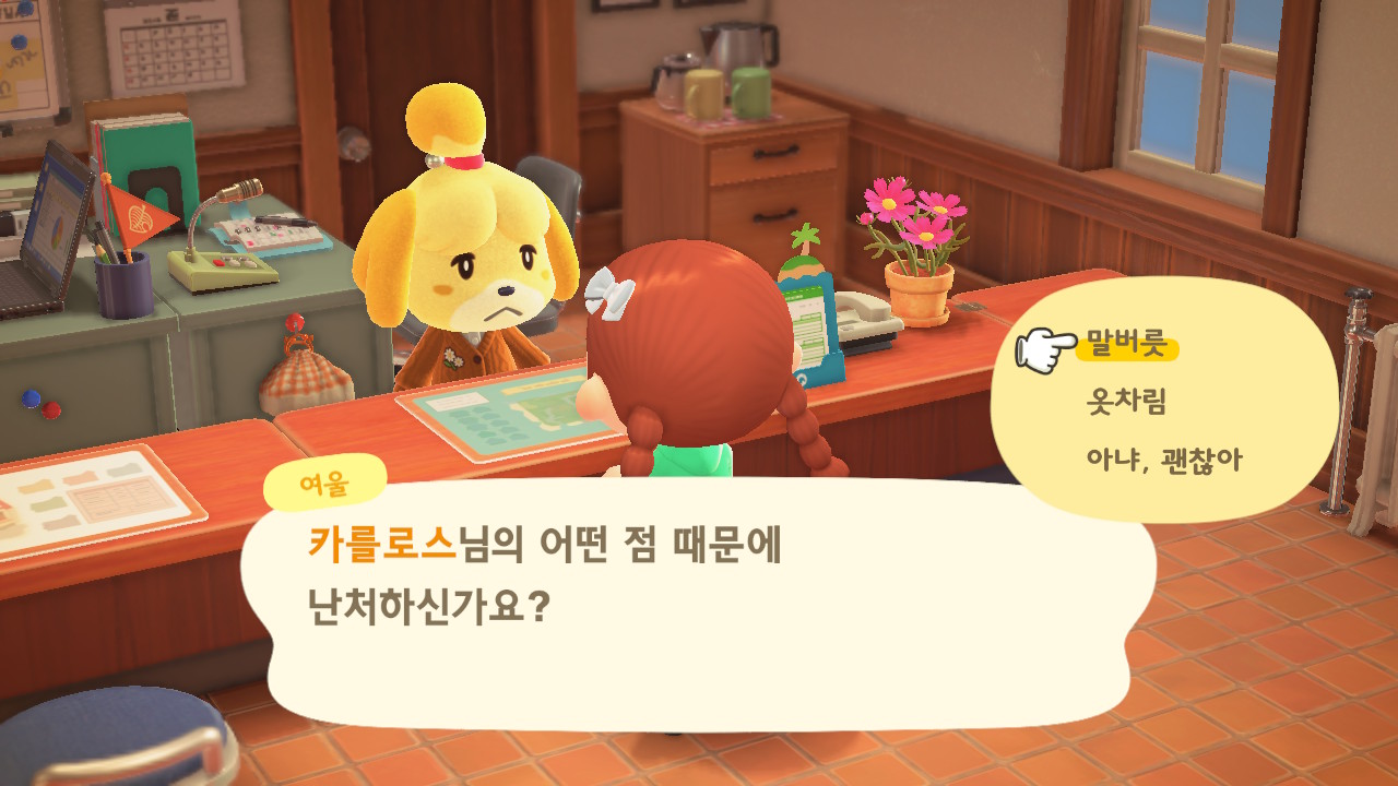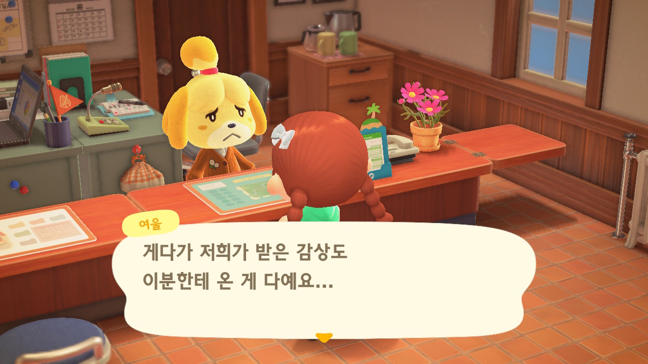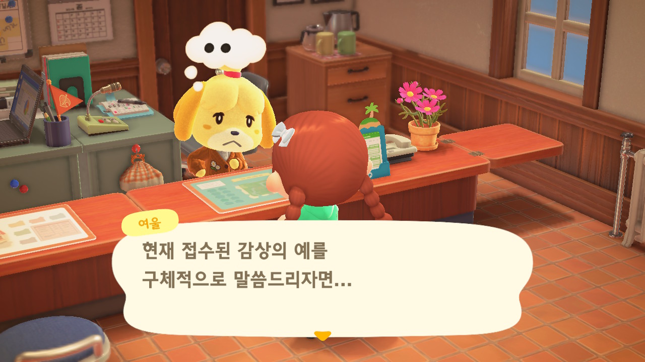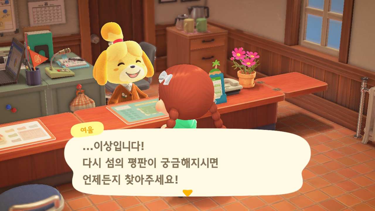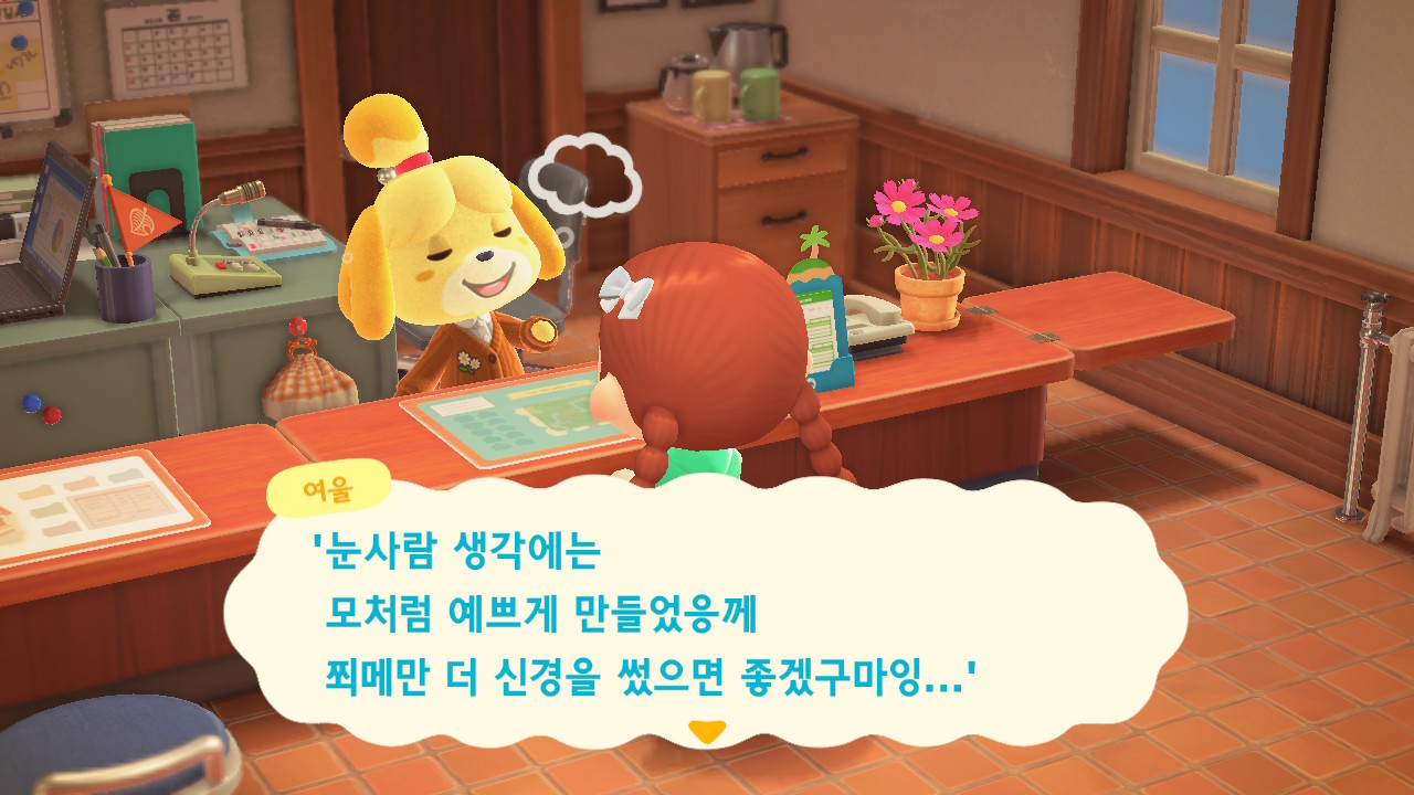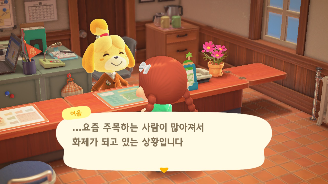 아직 주민들이 이사를 오지 않아서 여울이가 '주민을 늘려라' 하고 조언을 해주는 것 같다.