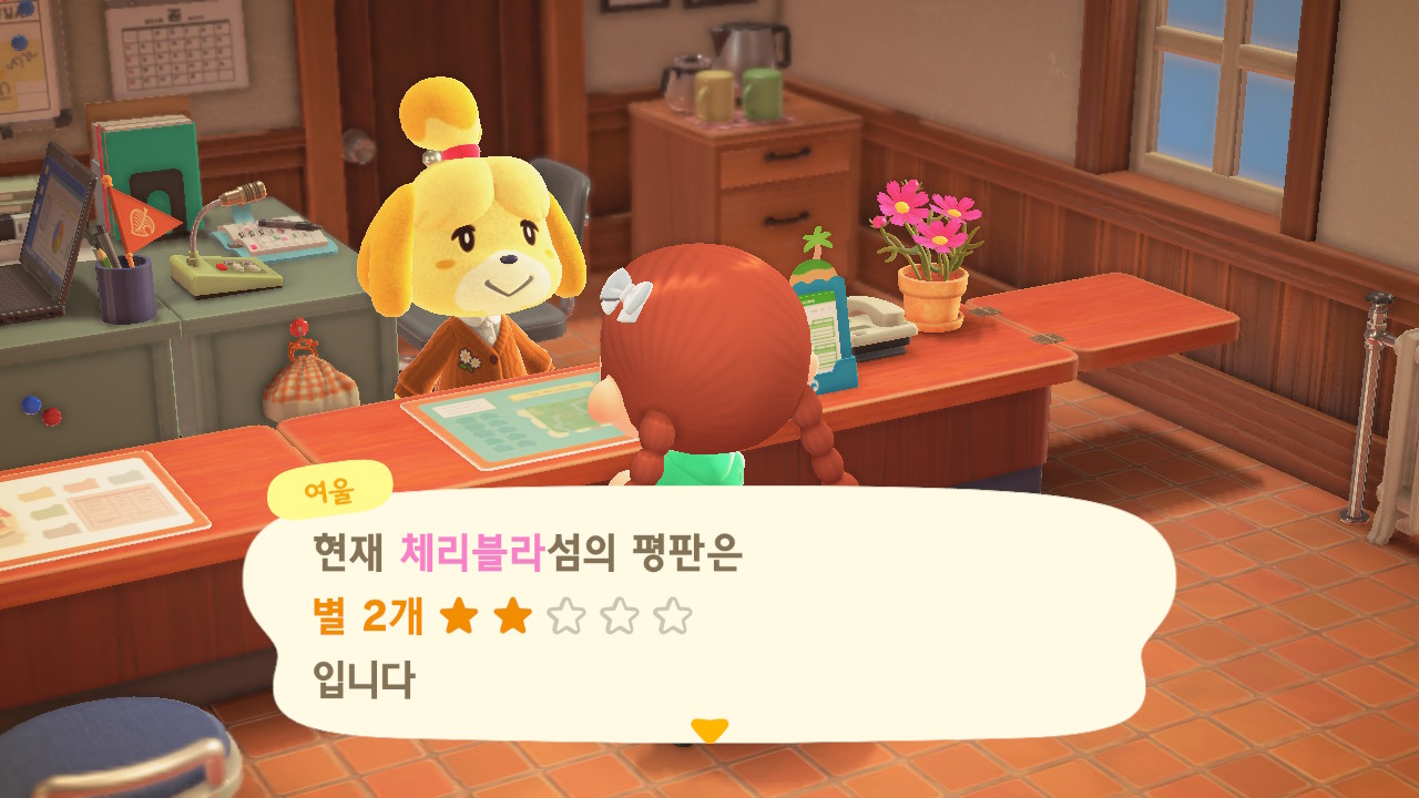 마일섬을 돌다가 지쳐서 여울이에게 평판을 물어보러 왔다.