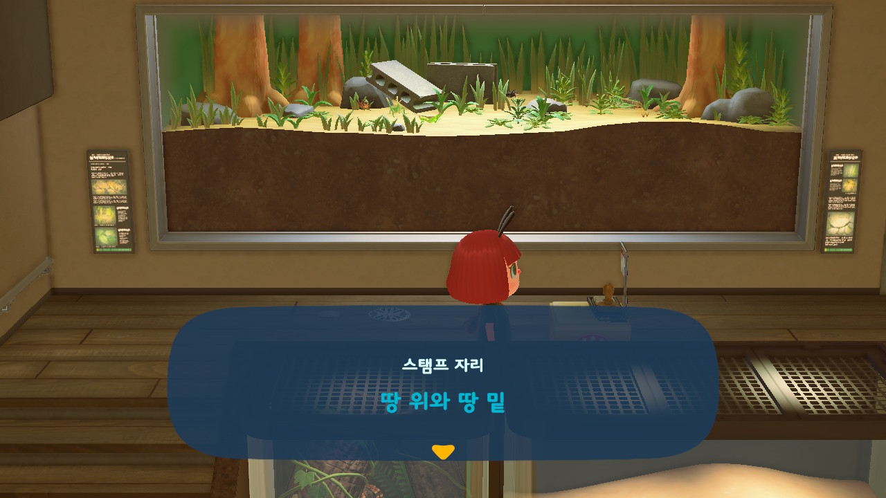 곤충, 물고기, 화석 전시실에 스탬프 테이블이 3개씩 있으니 가서 스탬프를 다 찍어오면 선물을 준다는 소리!