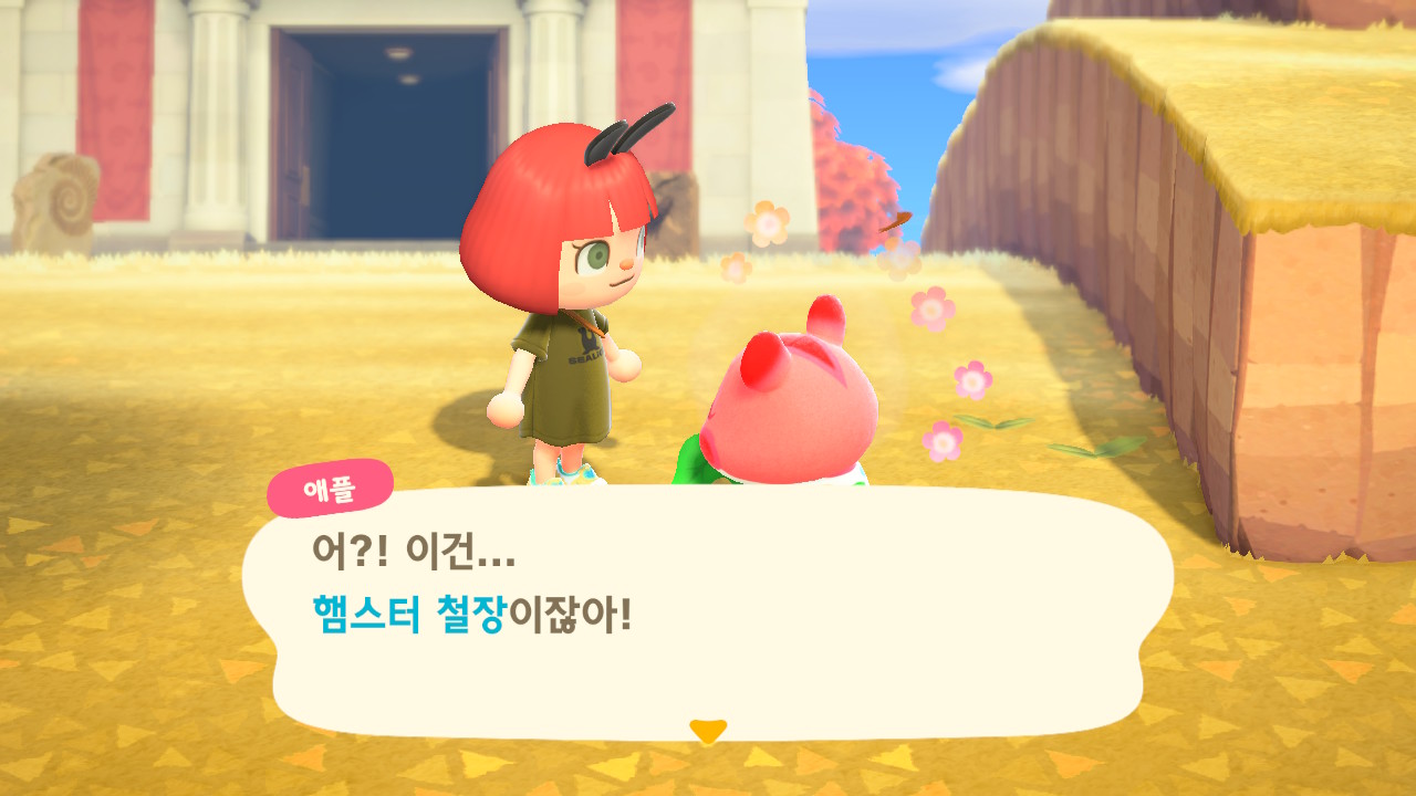 튀동숲에서는 햄스터 주민한테 햄스터를 선물하면 깜짝 놀라고서 받는데
