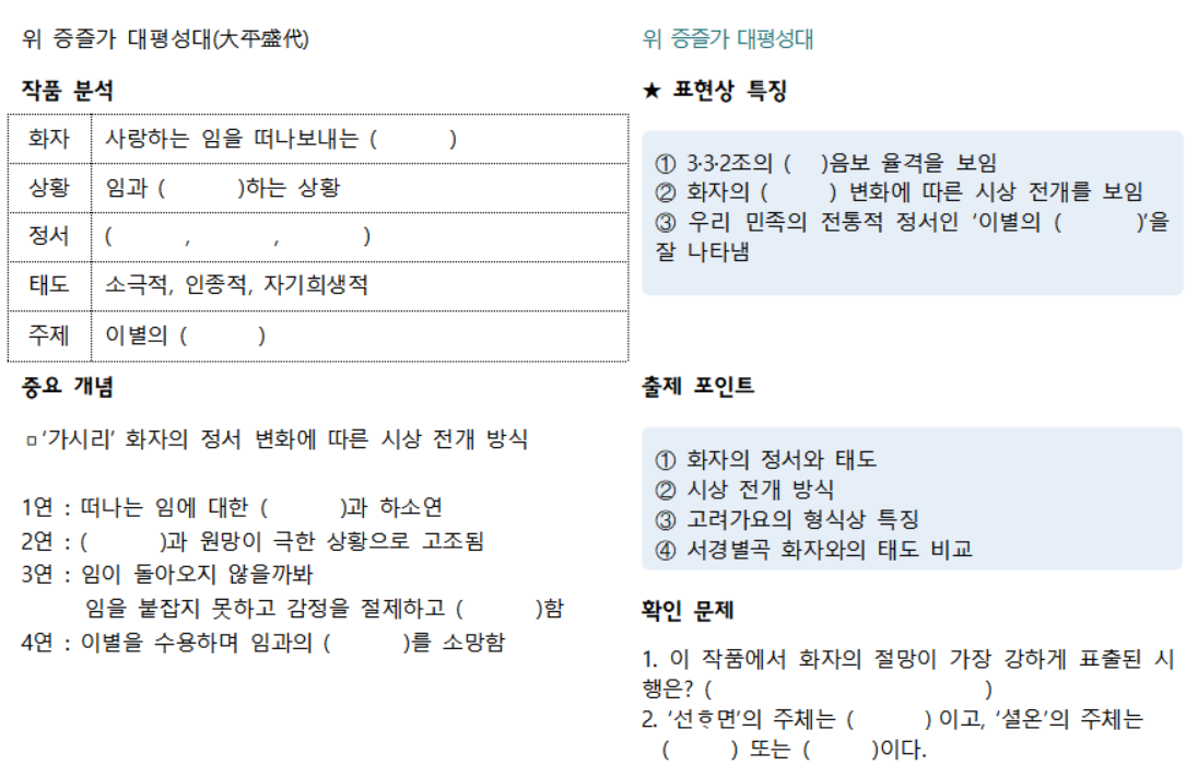 고려가요 '가시리' 빈칸테스트 파일 다운 받기 :)