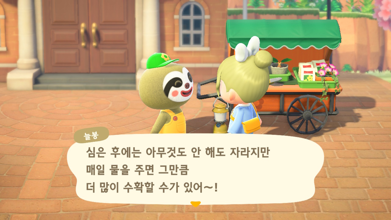 튀동숲 때에는 이런 작물 키우기 시스템이 없었기에 모동숲에 새로 생긴 작물 키우기 시스템이 너무 새롭고 재미있다.