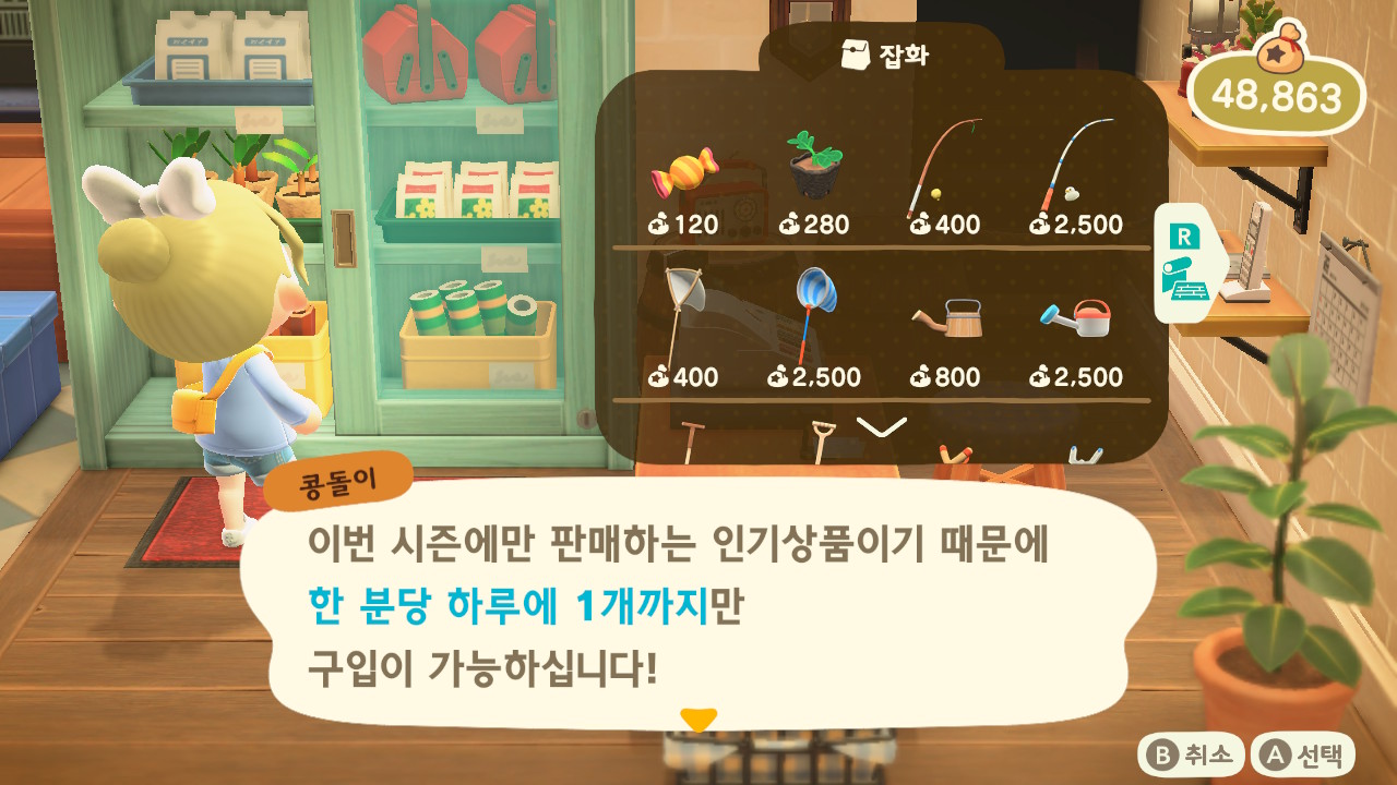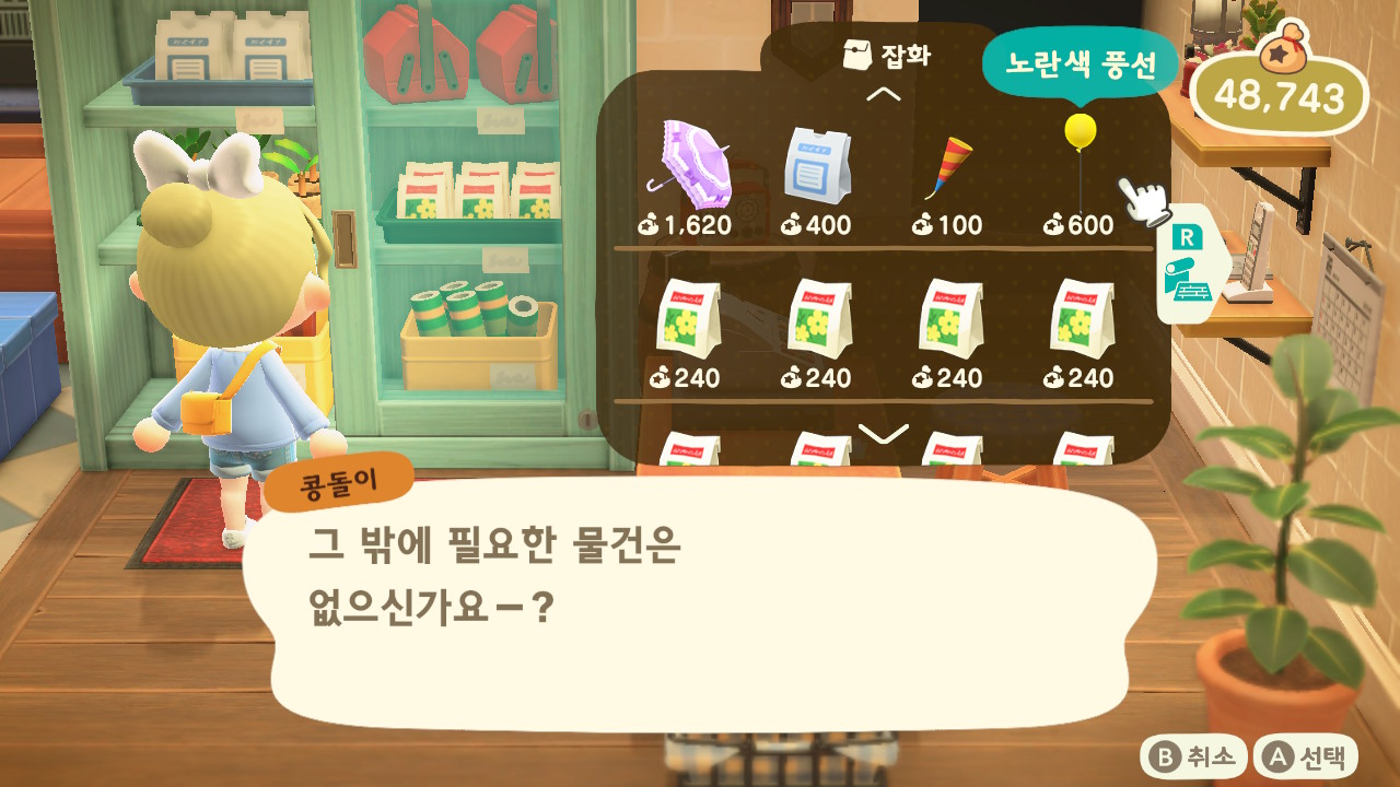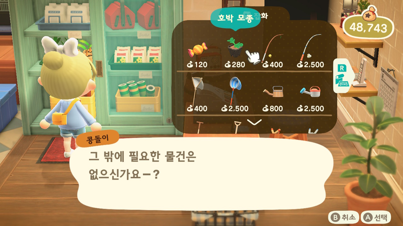 콩돌밤돌 상점에서도 호박 모종, 불꽃놀이 축제 행운권 아이템(매일 다름)을 구입할 수 있다.