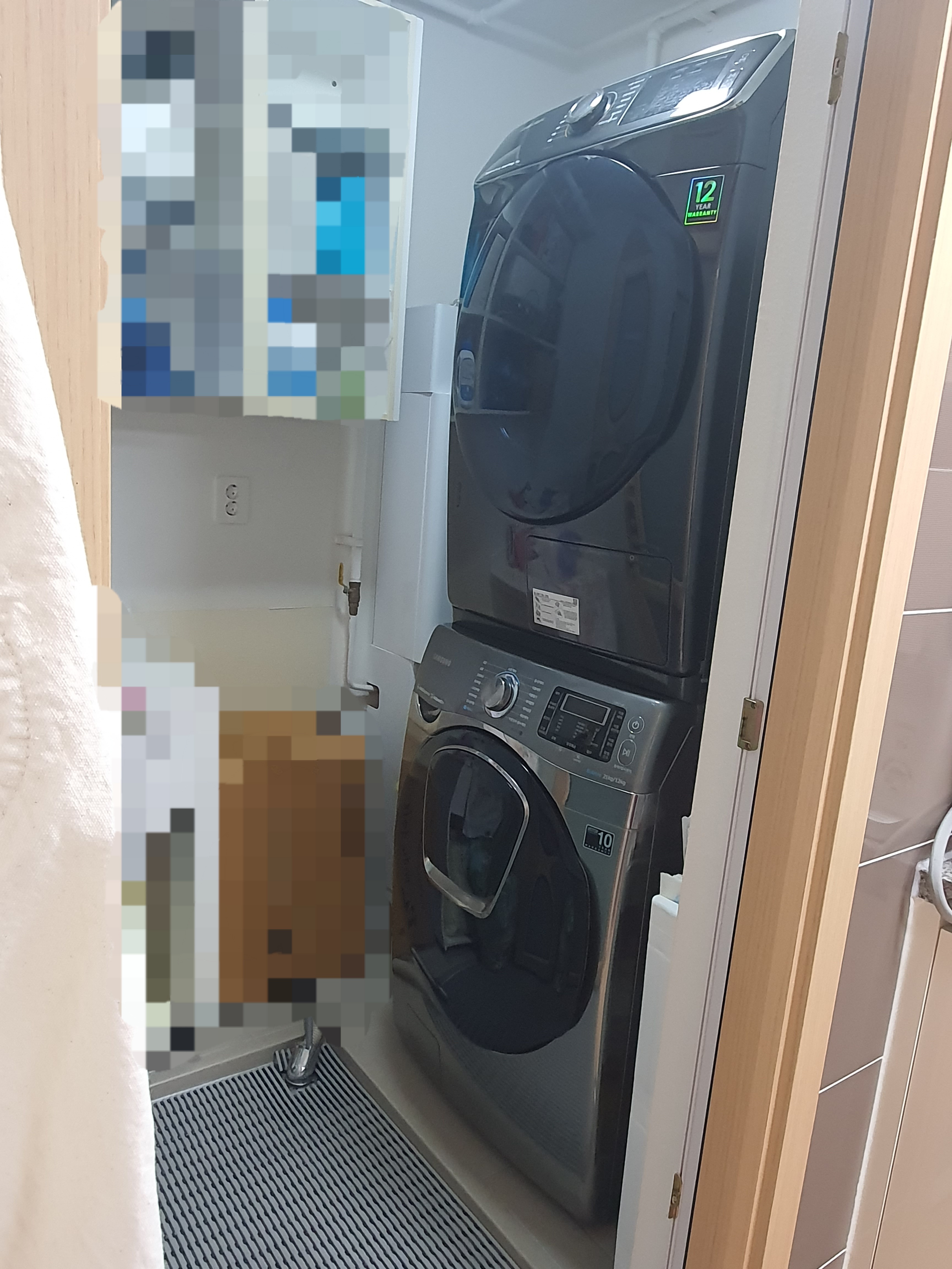 세탁실의 보조싱크대를 반으로 절단하고 나서야 드디어 건조기가 들어갈 수 있게 되어서 ㅠㅠ