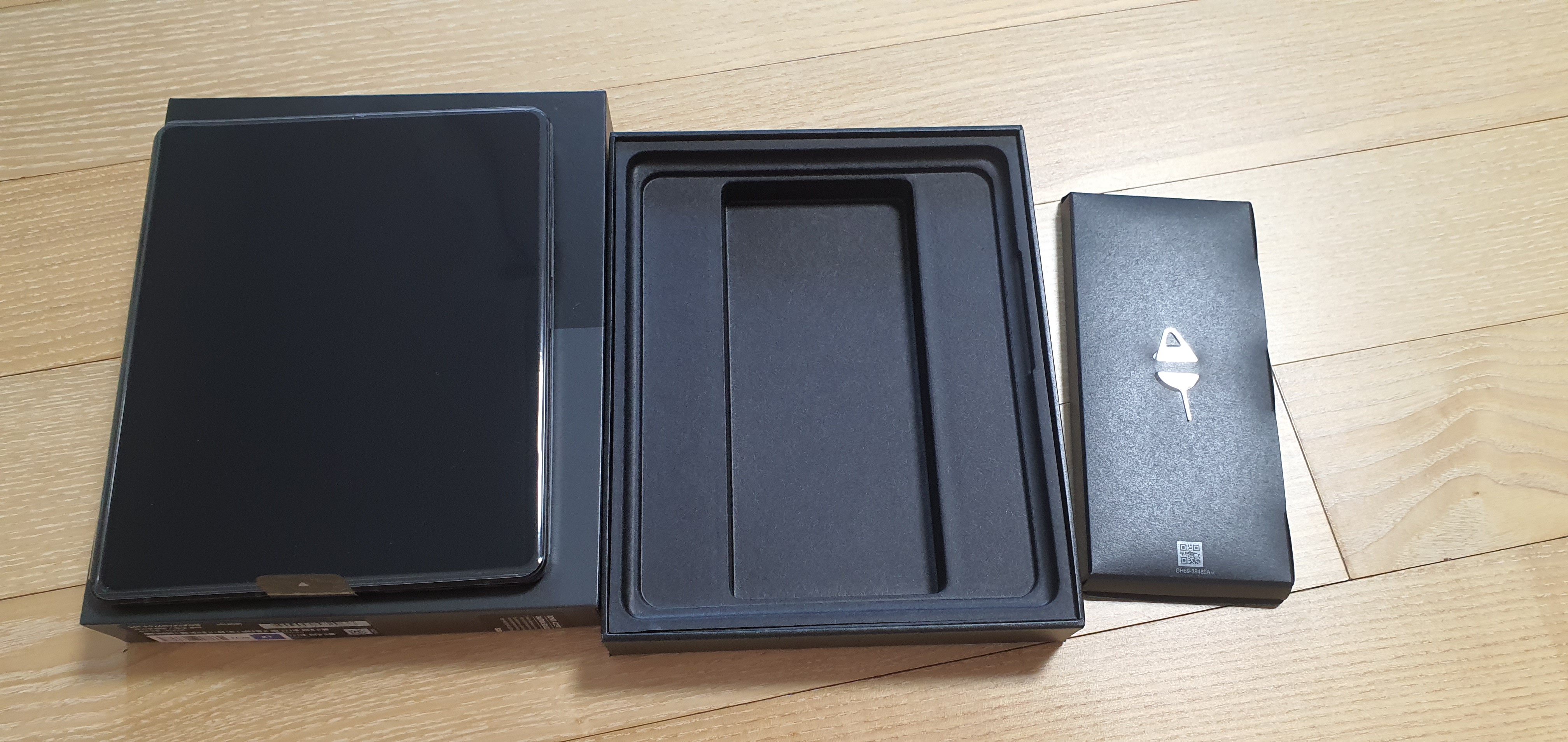 박스를 개봉하면 박스크기에 가득차게 폴드3가 펼친상태로 담겨져있다. 이게 폰이라니...