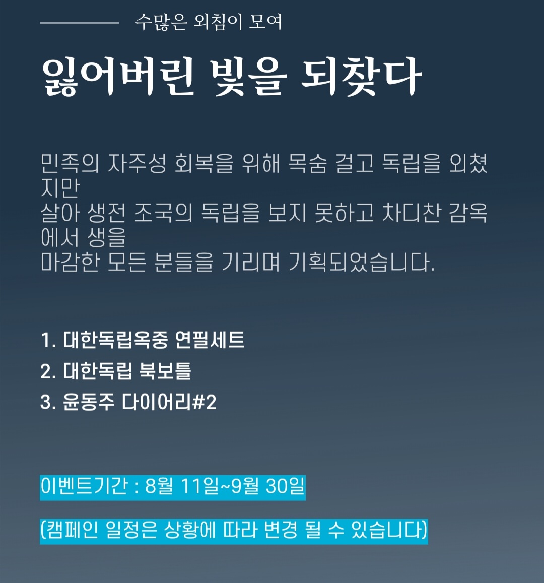 대한독립옥중 연필세트, 대한독립 북보틀, 윤동주 다이어리, 동주의 펜...