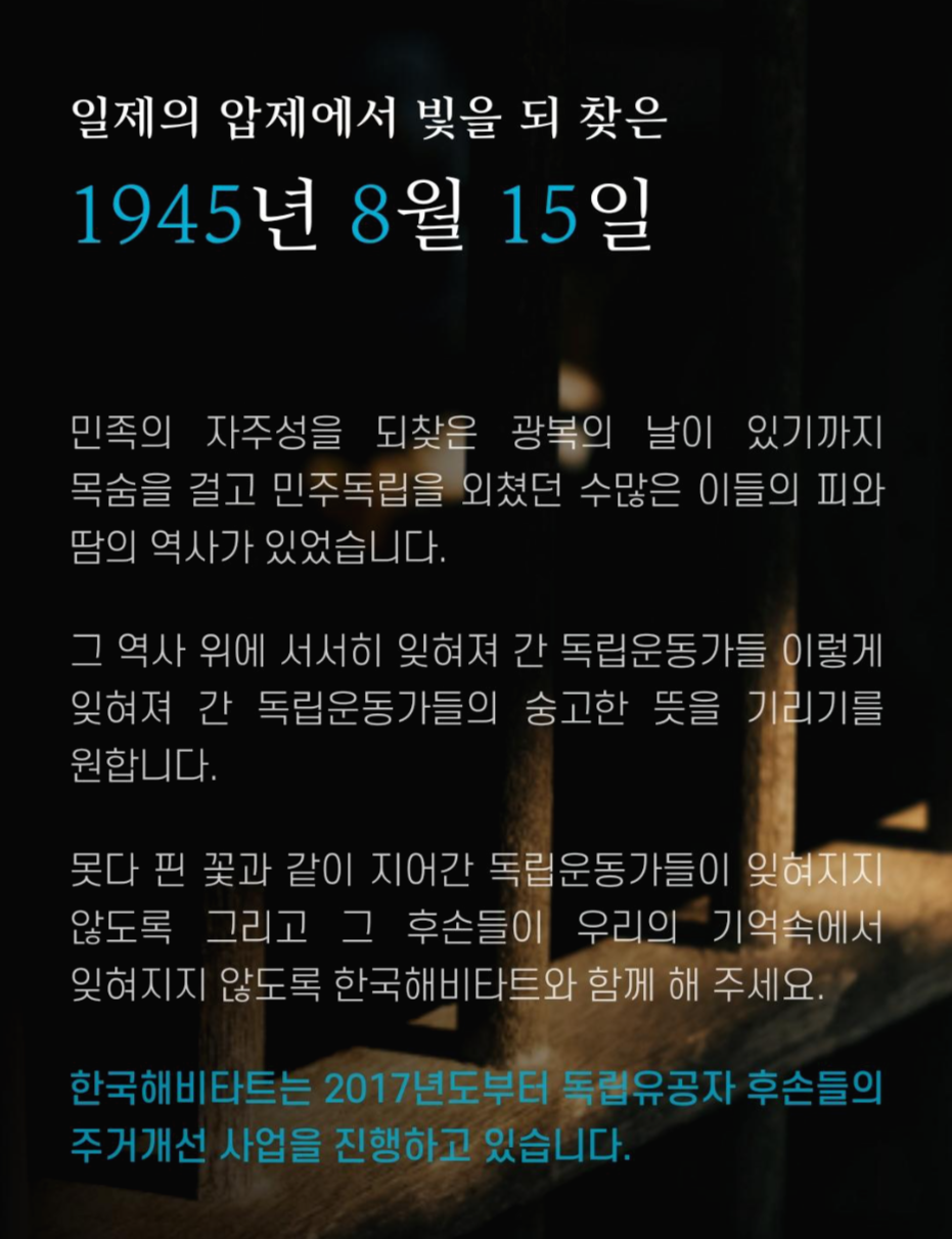 한국해비타트에서 하는 815 광복절 이벤트에 대해 포스팅해보게 되었다.