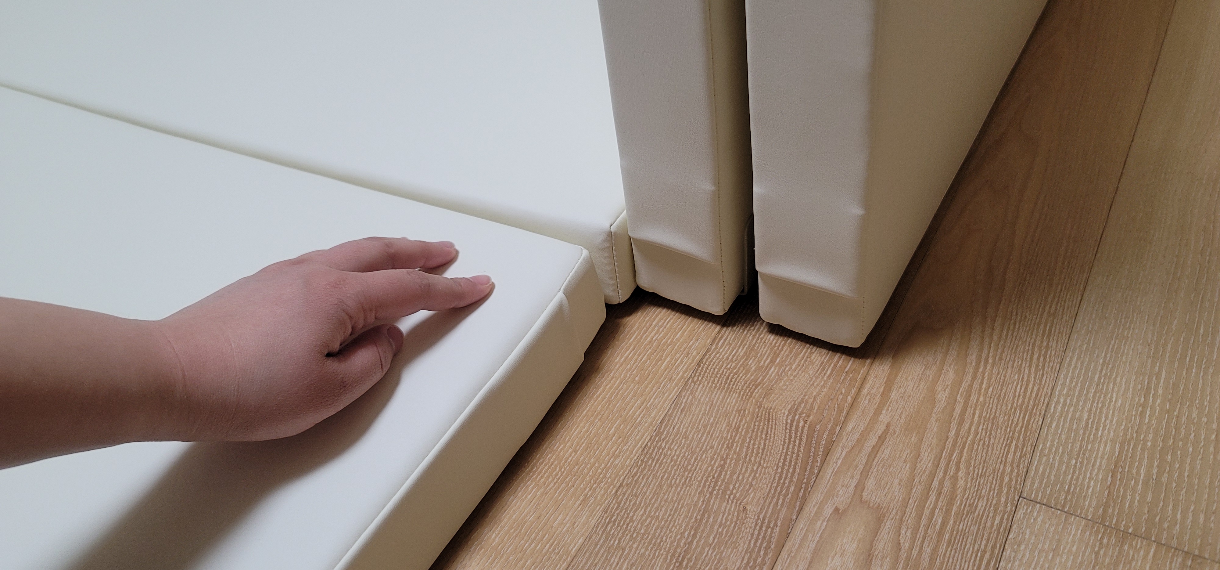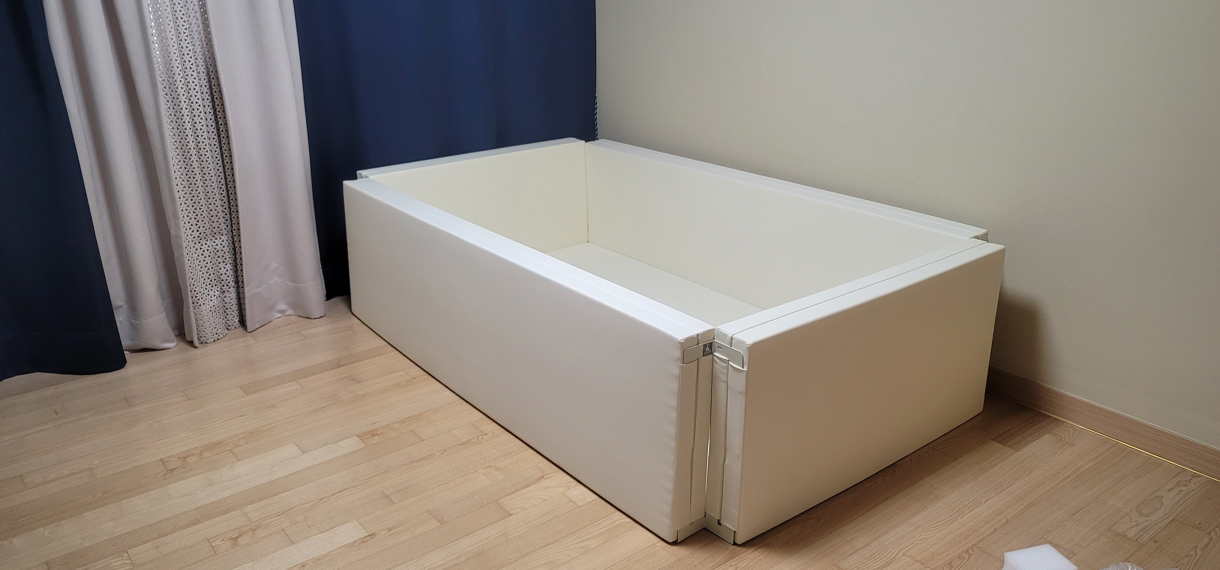 요렇게 한 쪽 가드를 펼쳐서 매트로 사용하게 되면, 이때 사용할 연결대가 없어서 그게 좀 아쉬웠다.