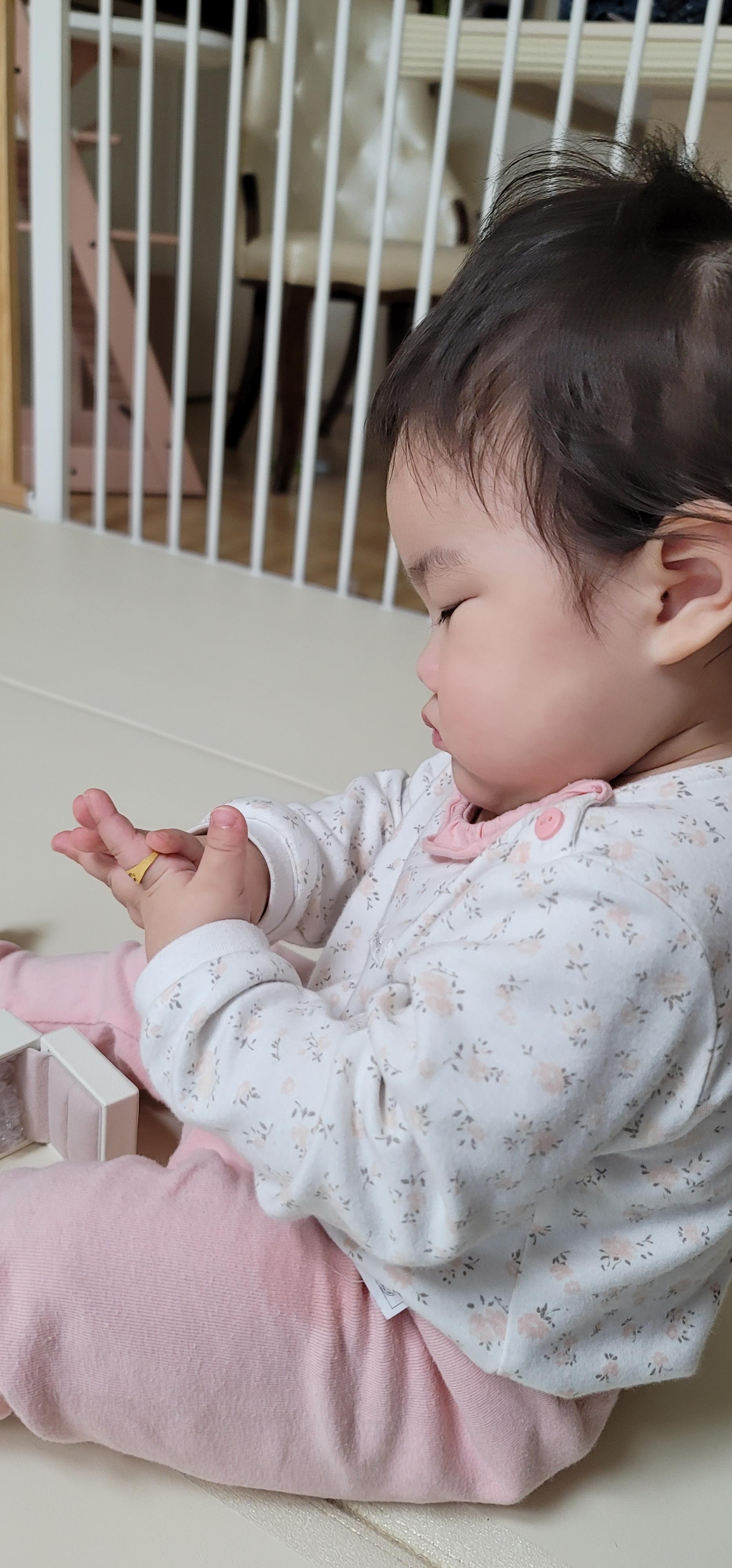 우리 아기 손에 끼워주니 초집중모드로 쳐다본다ㅋㅋ