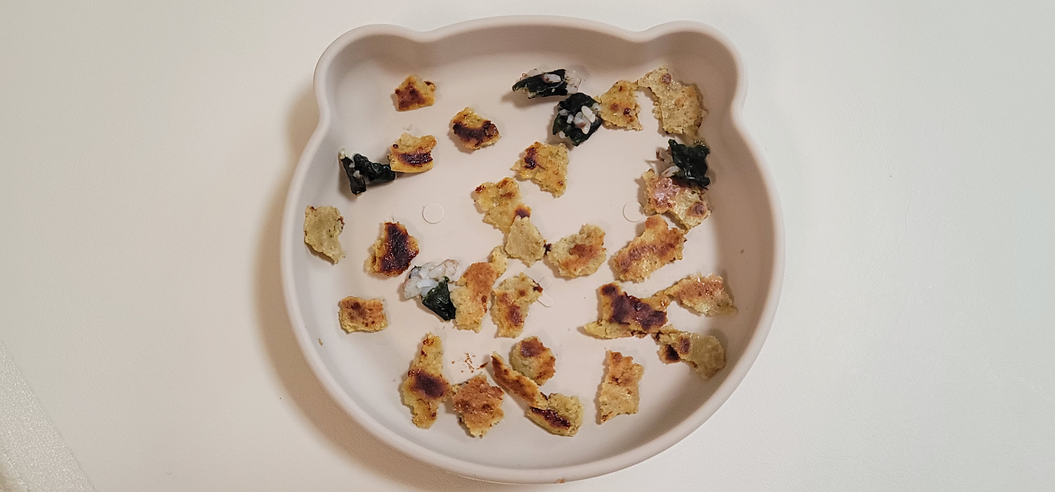 의자에서 먹기 힘들어할때는 그냥 매트 위에 그릇채로 내려두기도 하는데 그러면 놀면서 중간중간 먹고 가서 논다ㅋㅋㅋ 하나 집어먹고 놀고 반복..