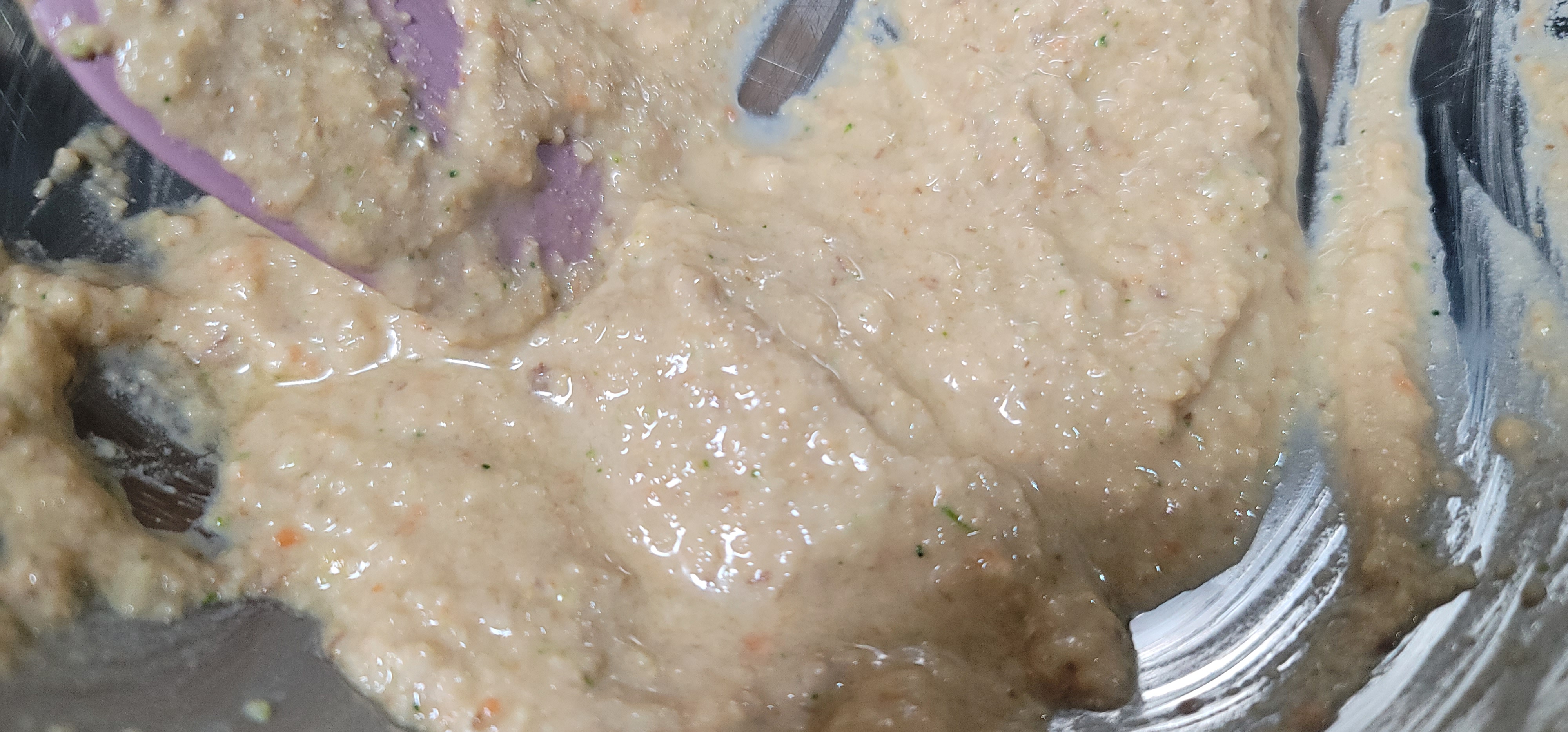 이유식때 쓰던 야채 몇가지 조금, 갈아둔 소고기 조금 넣고 섞어서 반죽을 만든다.