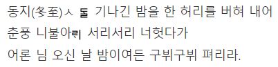 '동짓달 기나긴 밤을 한 허리를 베어내어' 부분을 살펴보면,