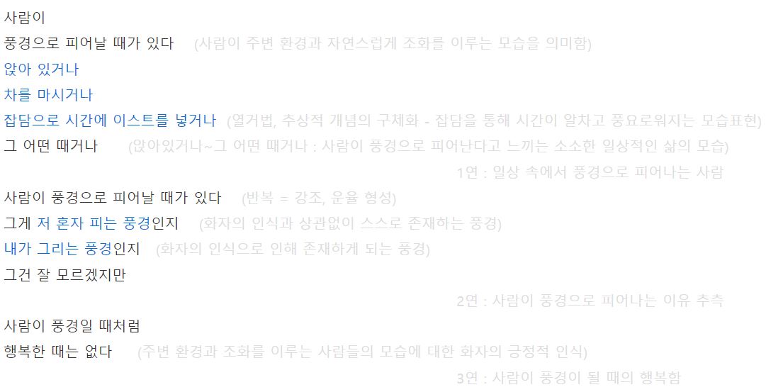 사람이 풍경으로 피어날 때가 있다 (반복 = 강조, 운율 형성)