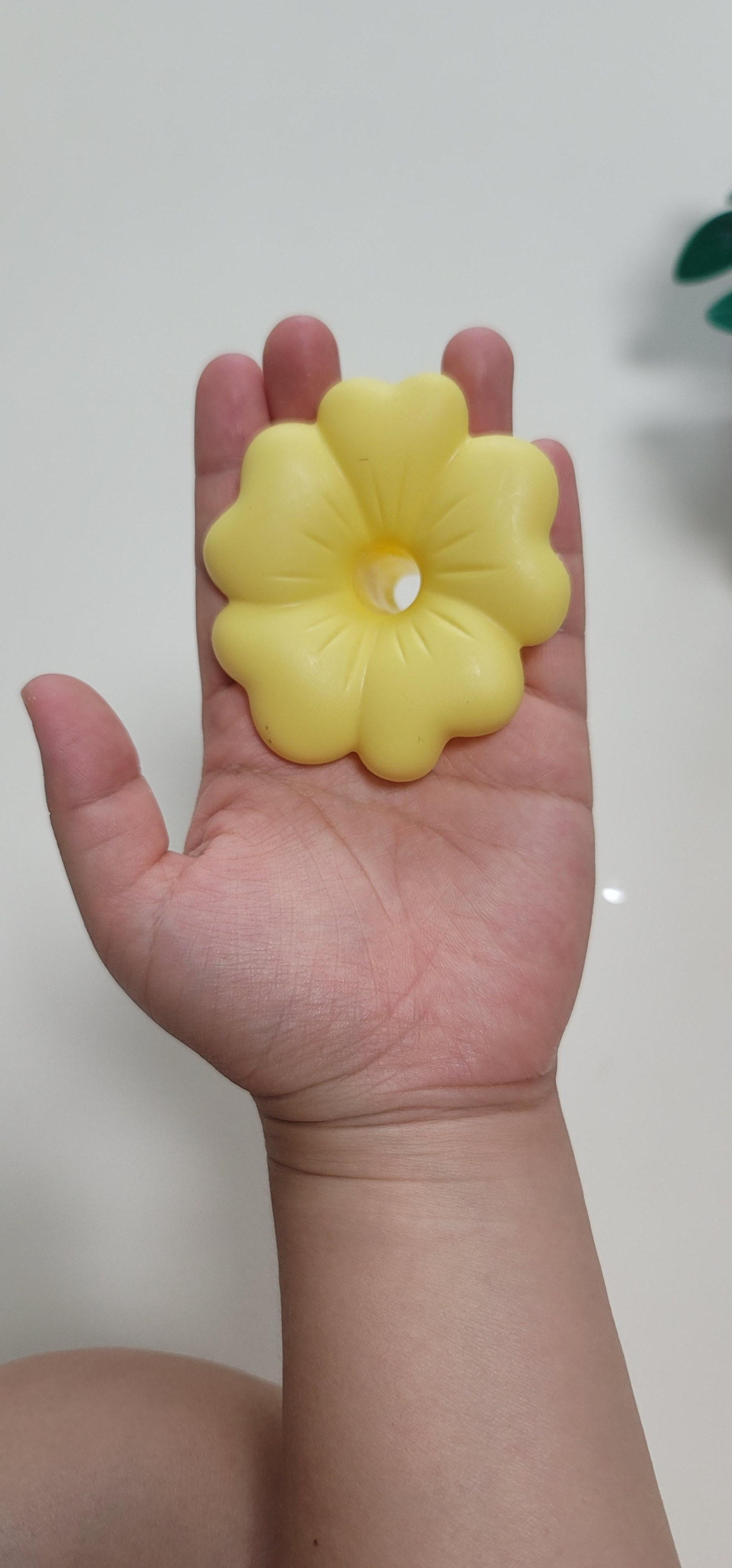 아기가 꽃 블럭을 손에 든다면 이정도 크기.