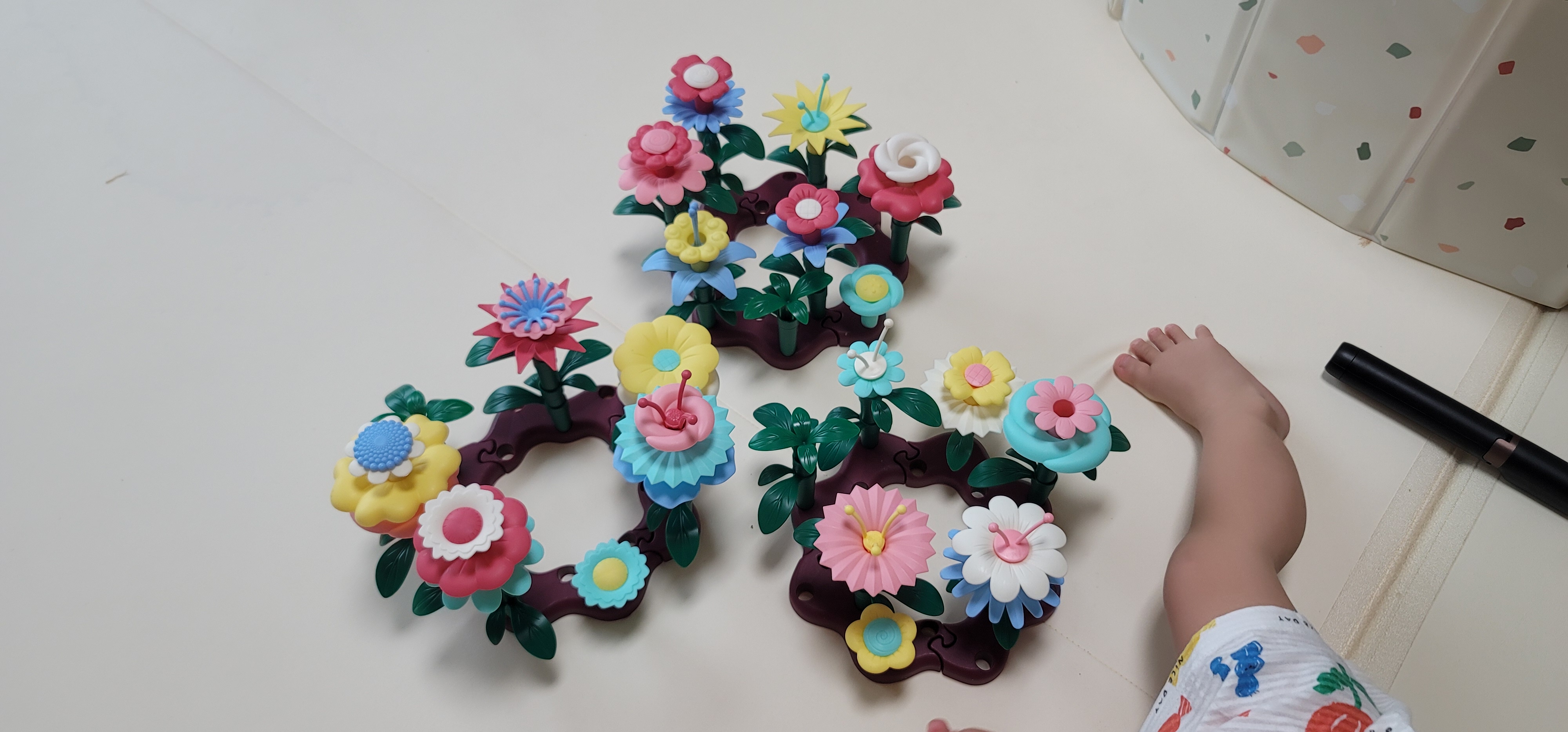 꽃을 결합하는 데에 성공률이 높지는 않지만, 그래도 관심있게 꽂는 연습을 하면서 가지고 놀 수 있을 정도인 것 같다.