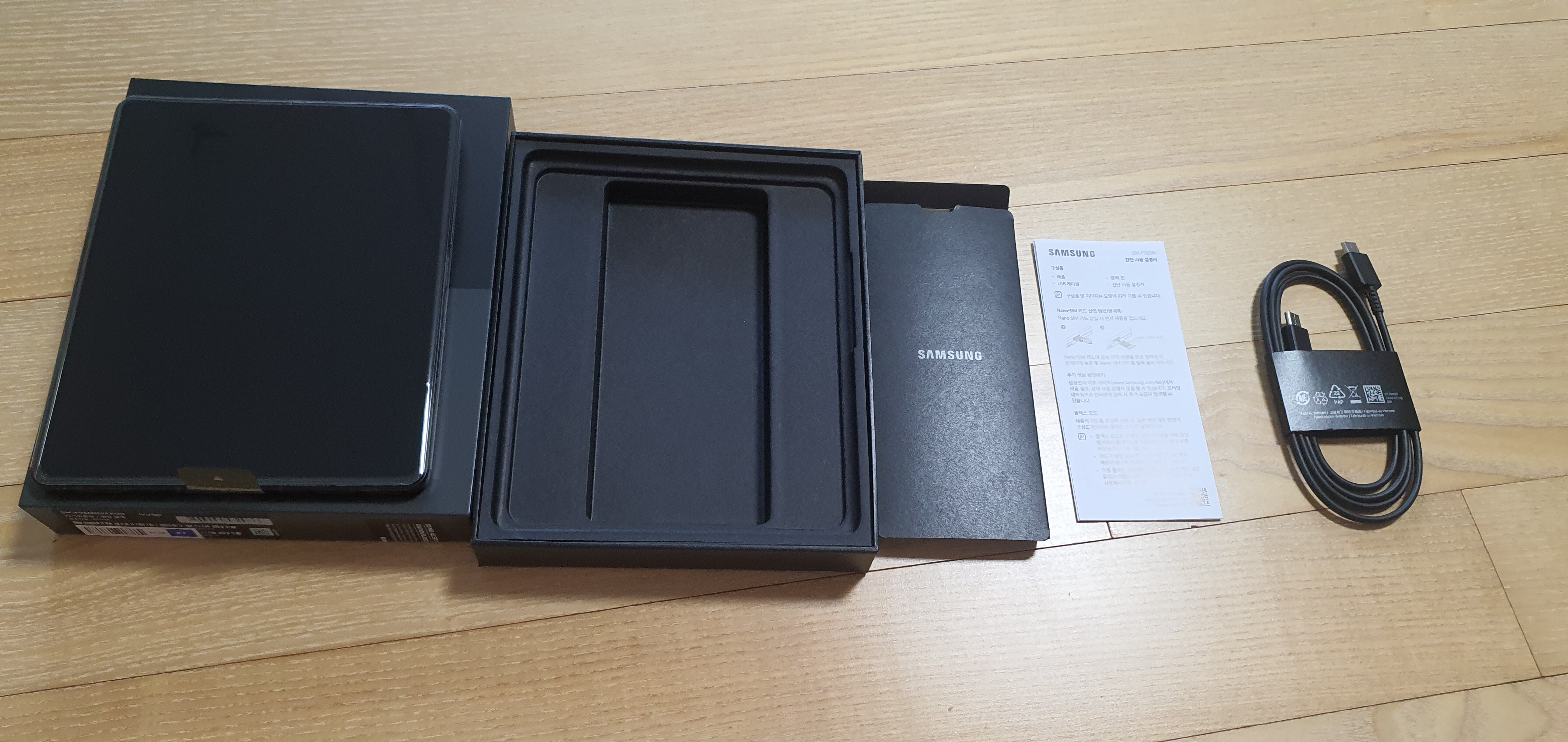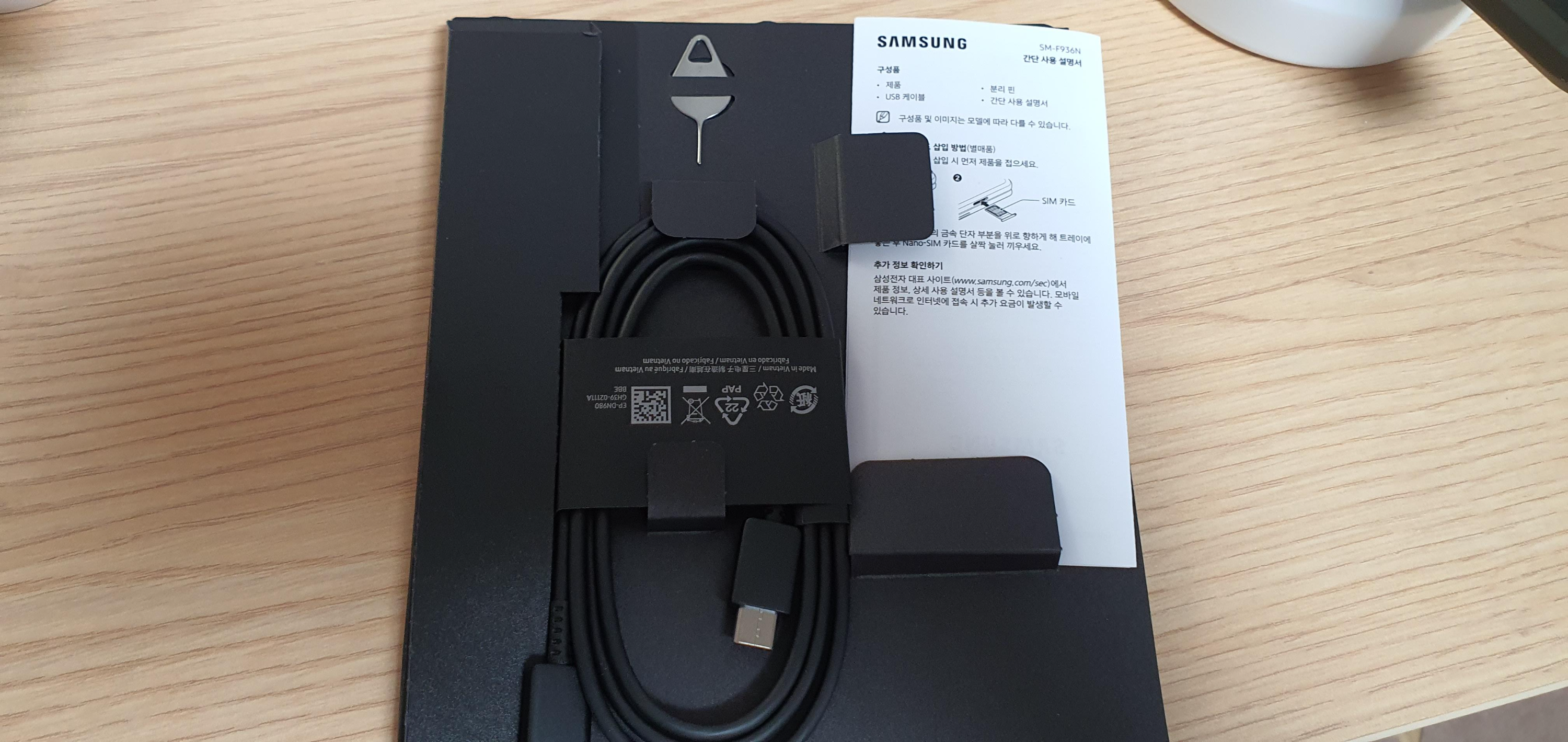 왼쪽 폴드4 오른쪽 폴드3 : C to C 케이블과 설명서, 유심핀 이게 끝인건 매한가지다