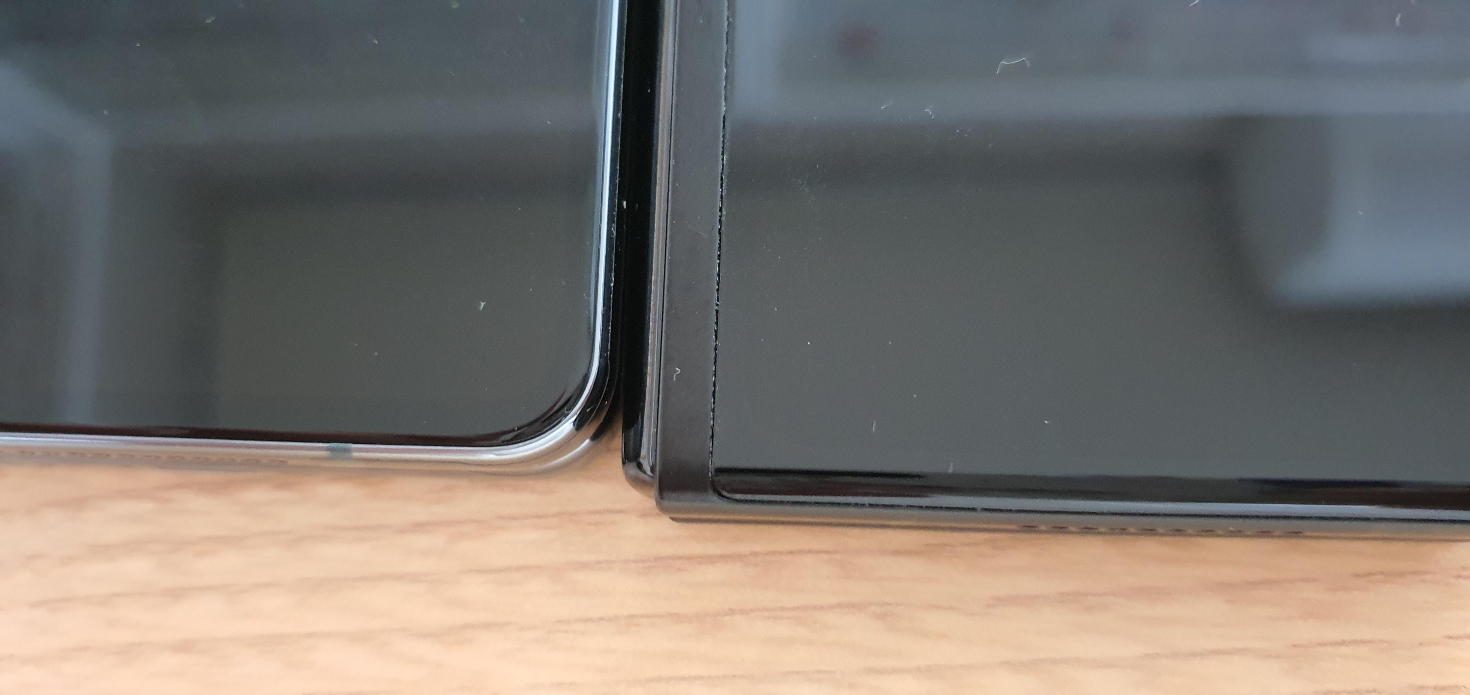 왼쪽 폴드4 오른쪽 폴드3 : 내부 배젤 차이가 꽤 크게 난다.