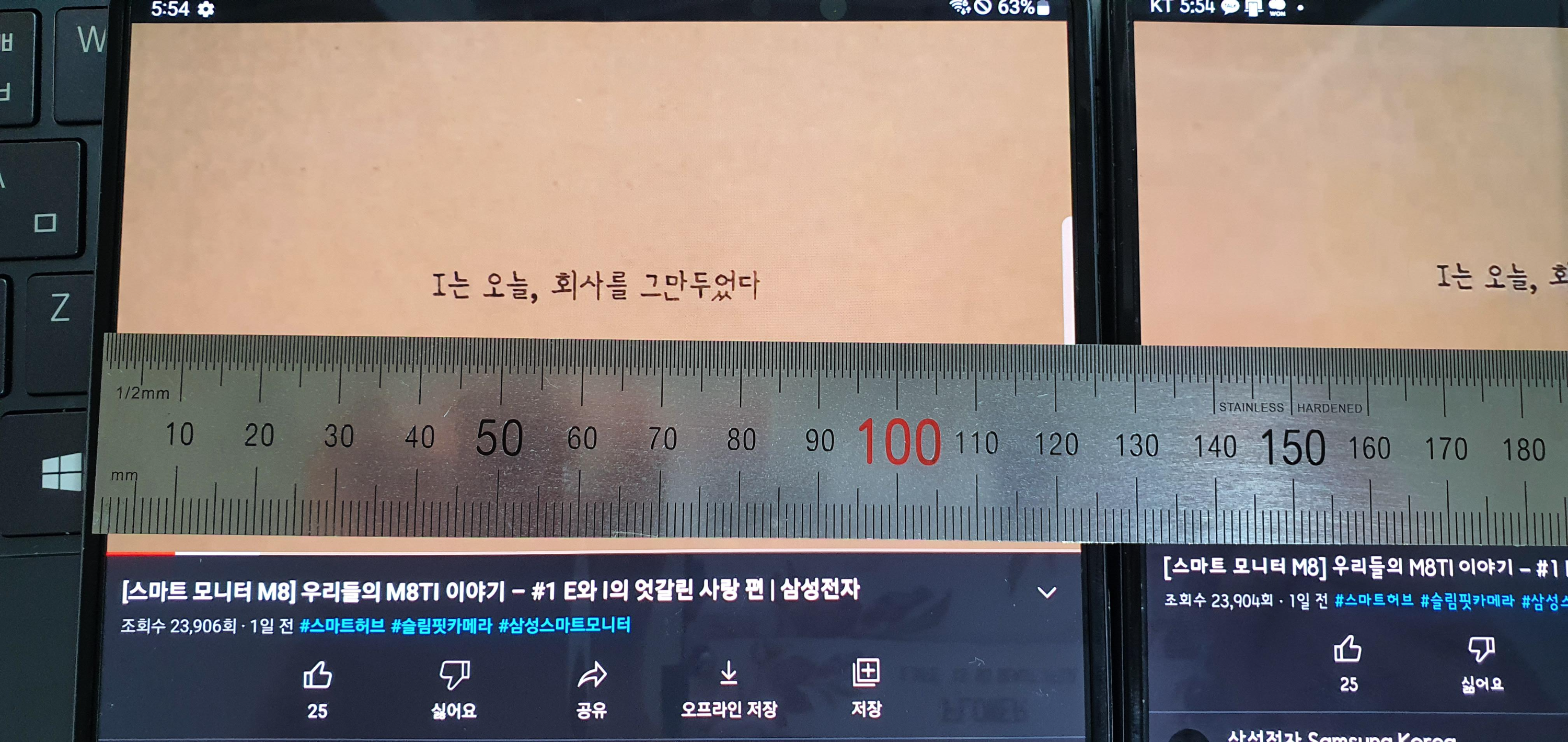 실제로 세로로 유튜브를 틀었을때 폴드4는 가록 약 123mm, 폴드3는 120mm정도로 폴드4로 더 크게 볼 수 있다.
