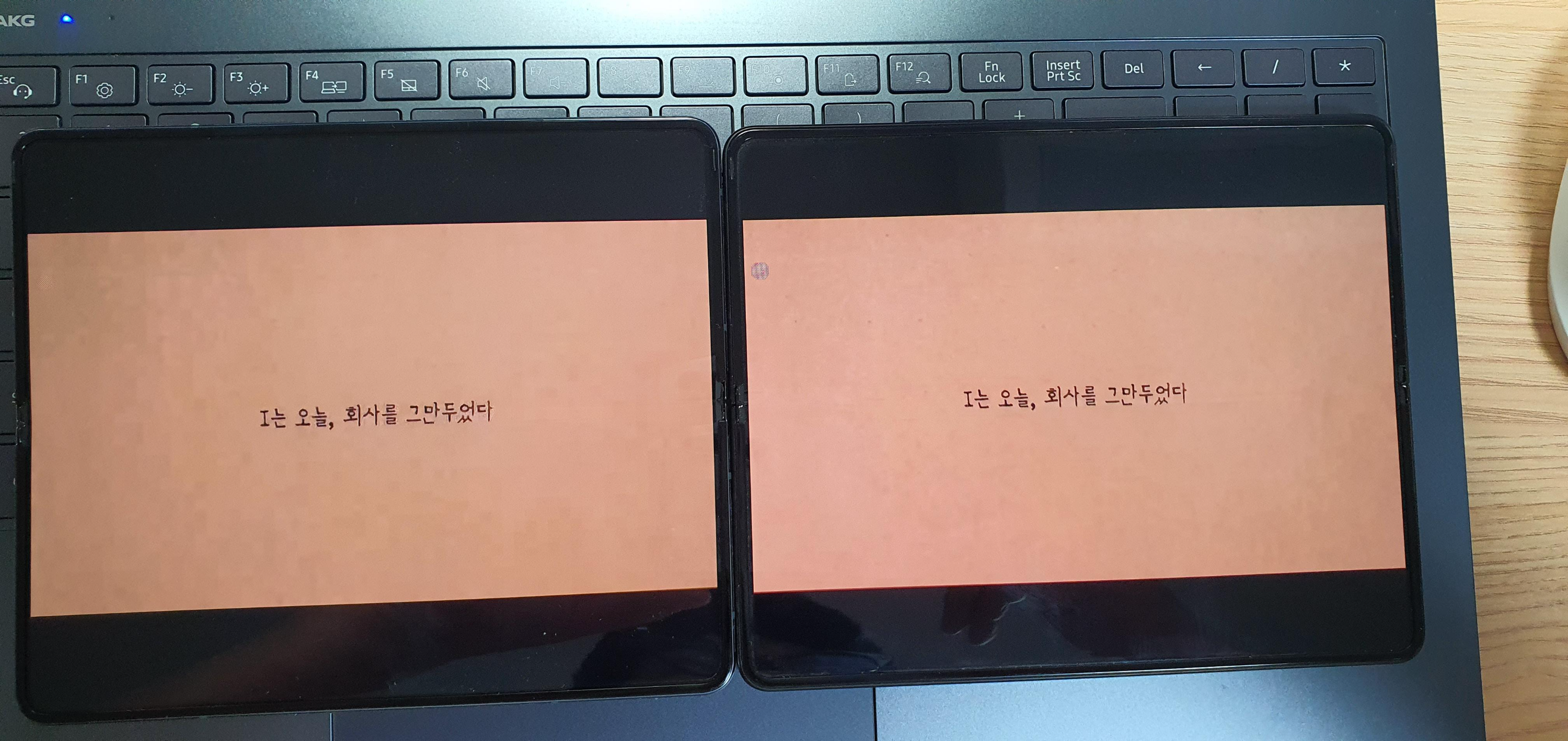 왼쪽 폴드4 오른쪽 폴드3 : 글씨 보기가 훨씬 편해졌다.