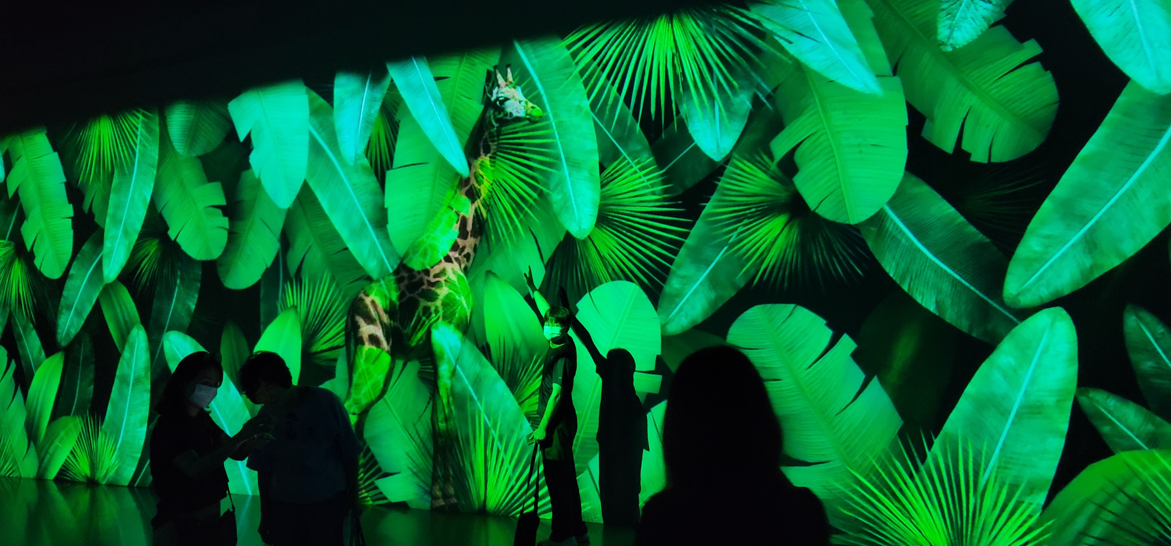 알록달록한 동물들을 테마로 한 정글 컨셉의 미디어아트도 있었다.