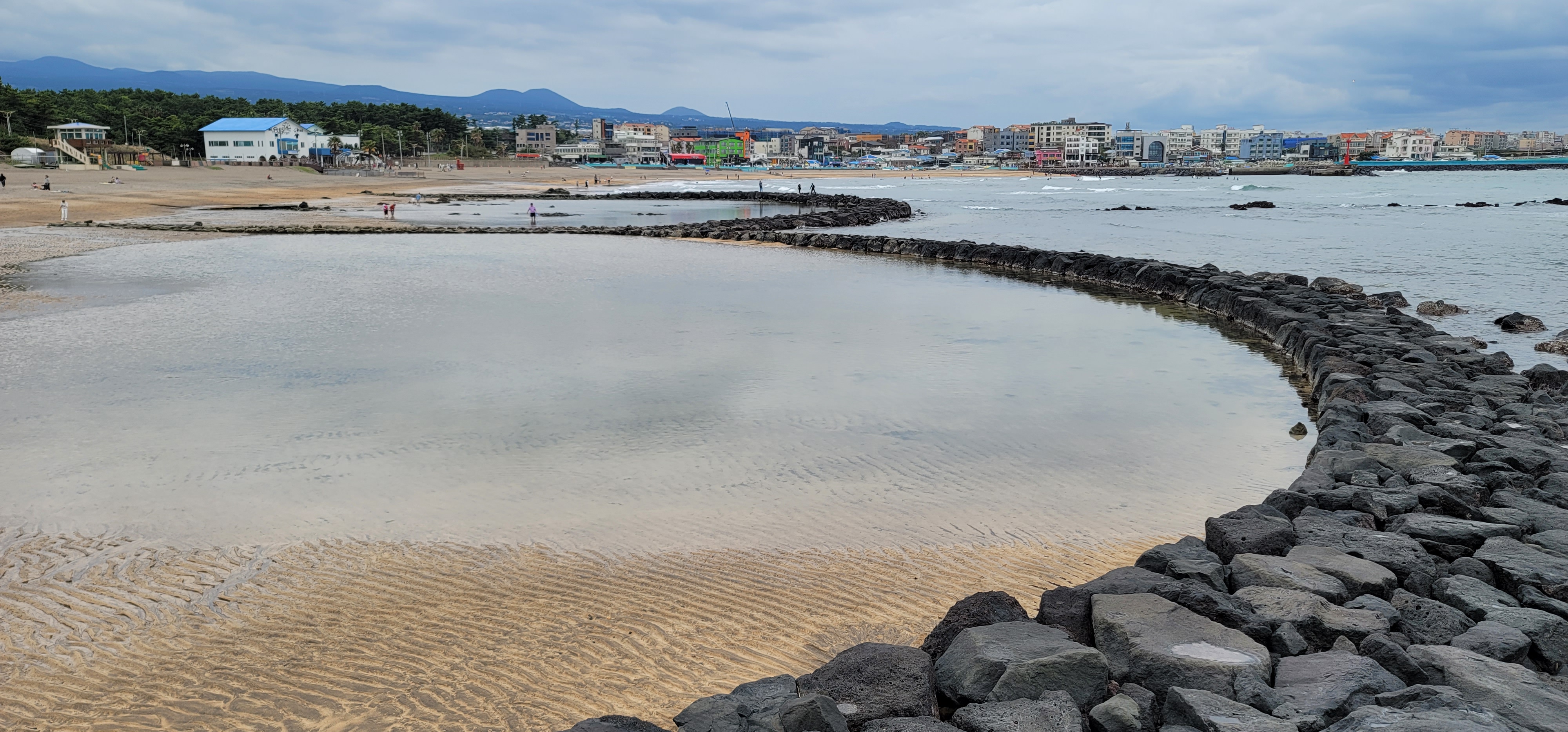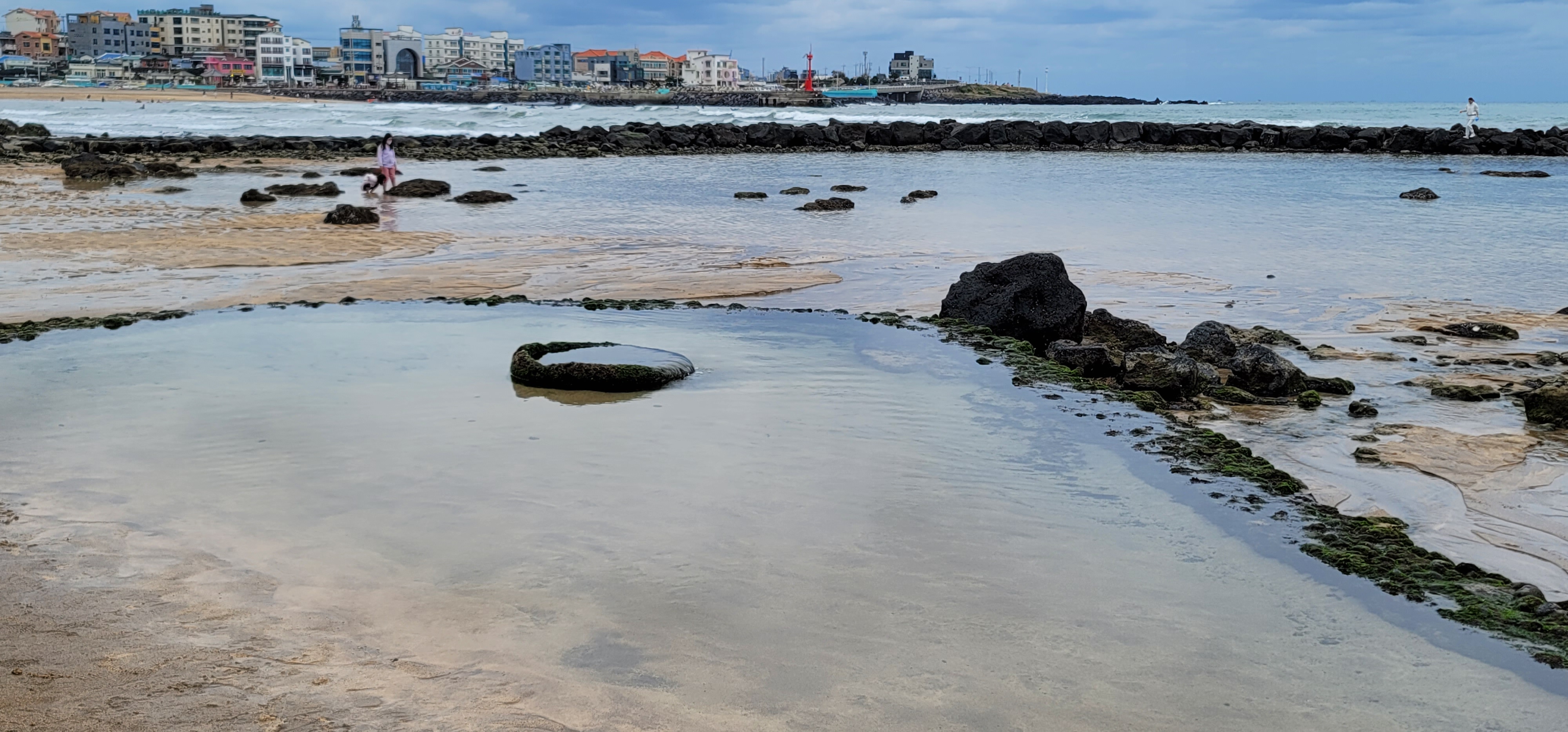 원담이 파도를 막아주는 역할을 해서 잔잔하고 얕으니 여름에 아이들이 해수욕을 하며 놀기에 정말 좋을 것 같다.