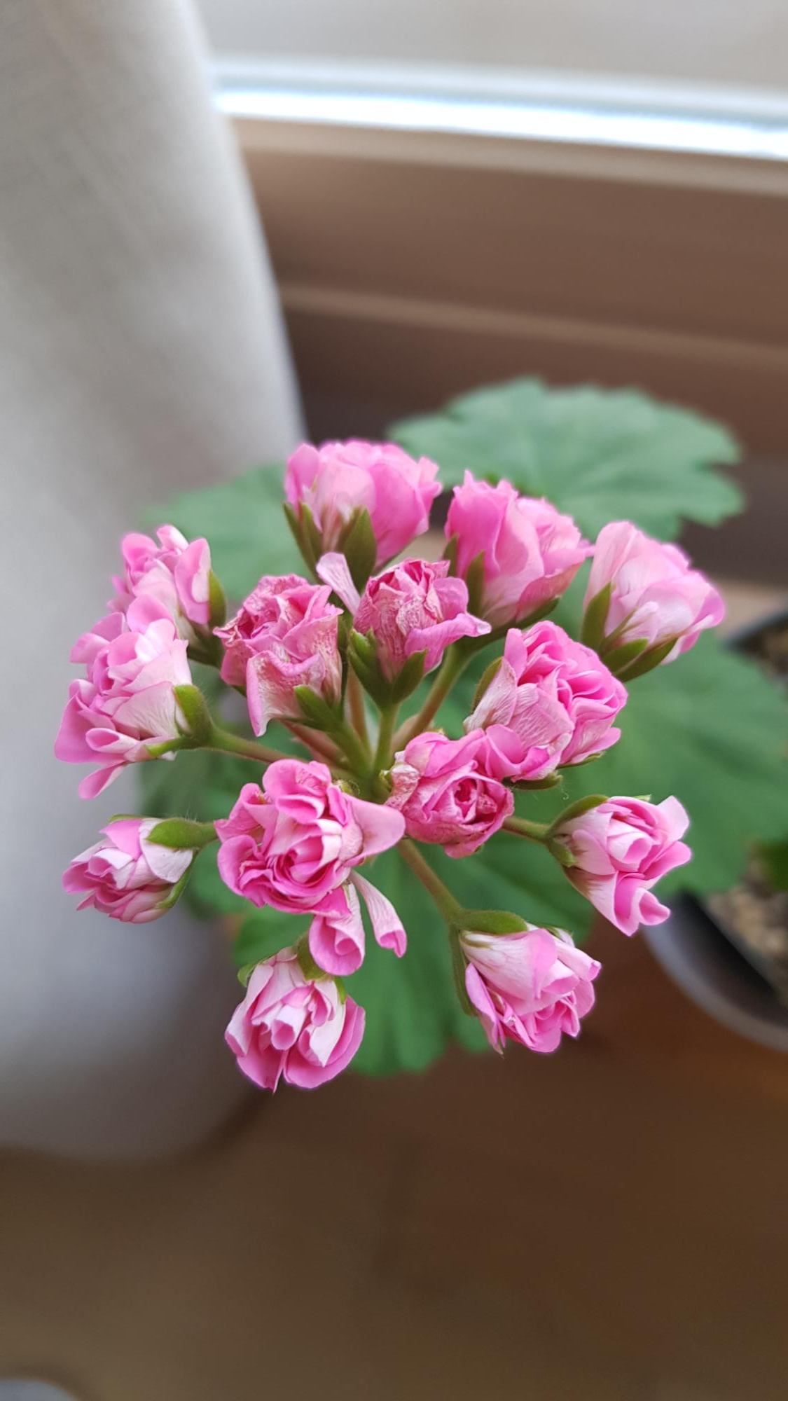 로즈계열의 제라늄이라고 들었는데 꽃 하나하나가 장미모양과 닮아있다 :)