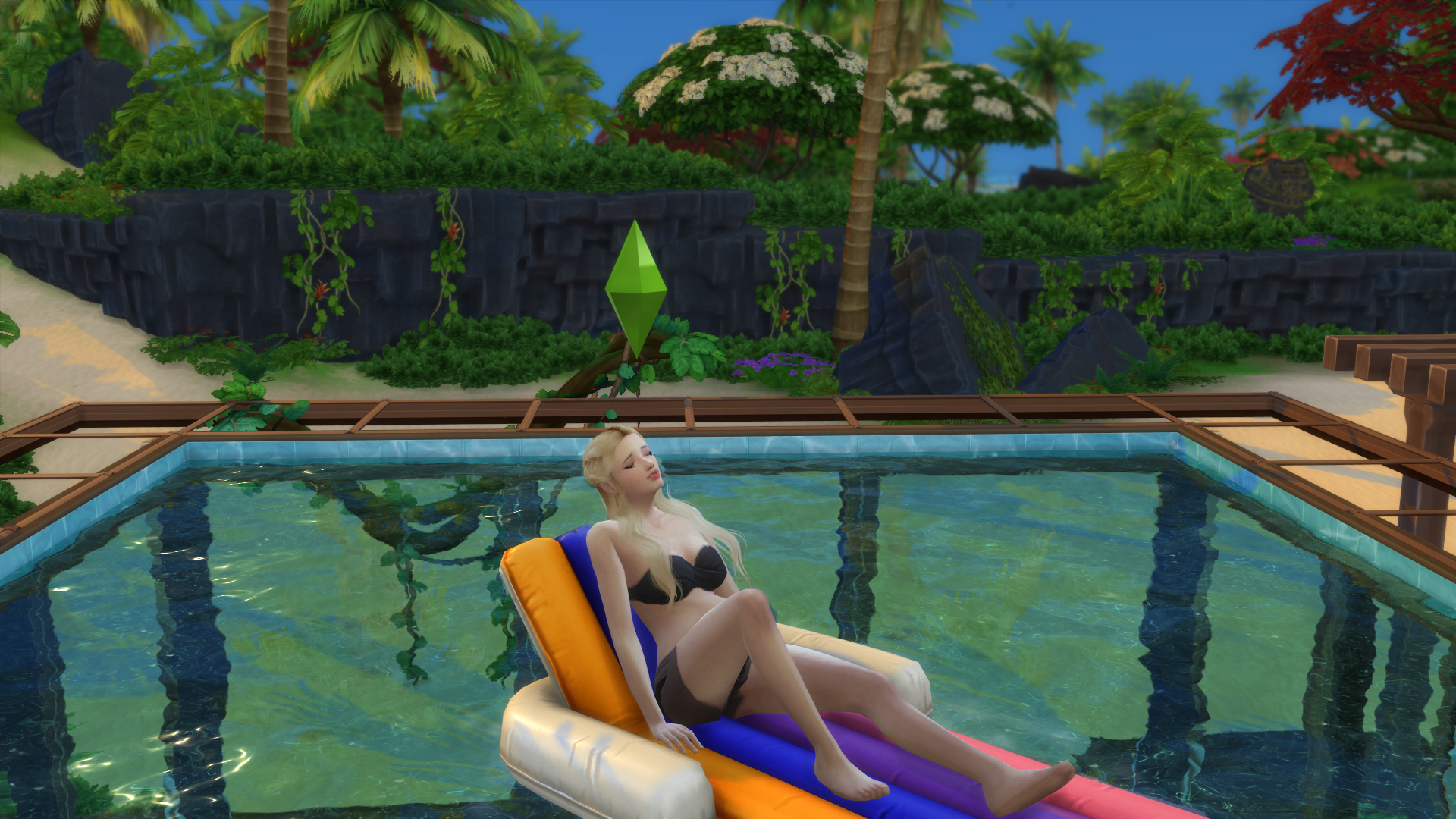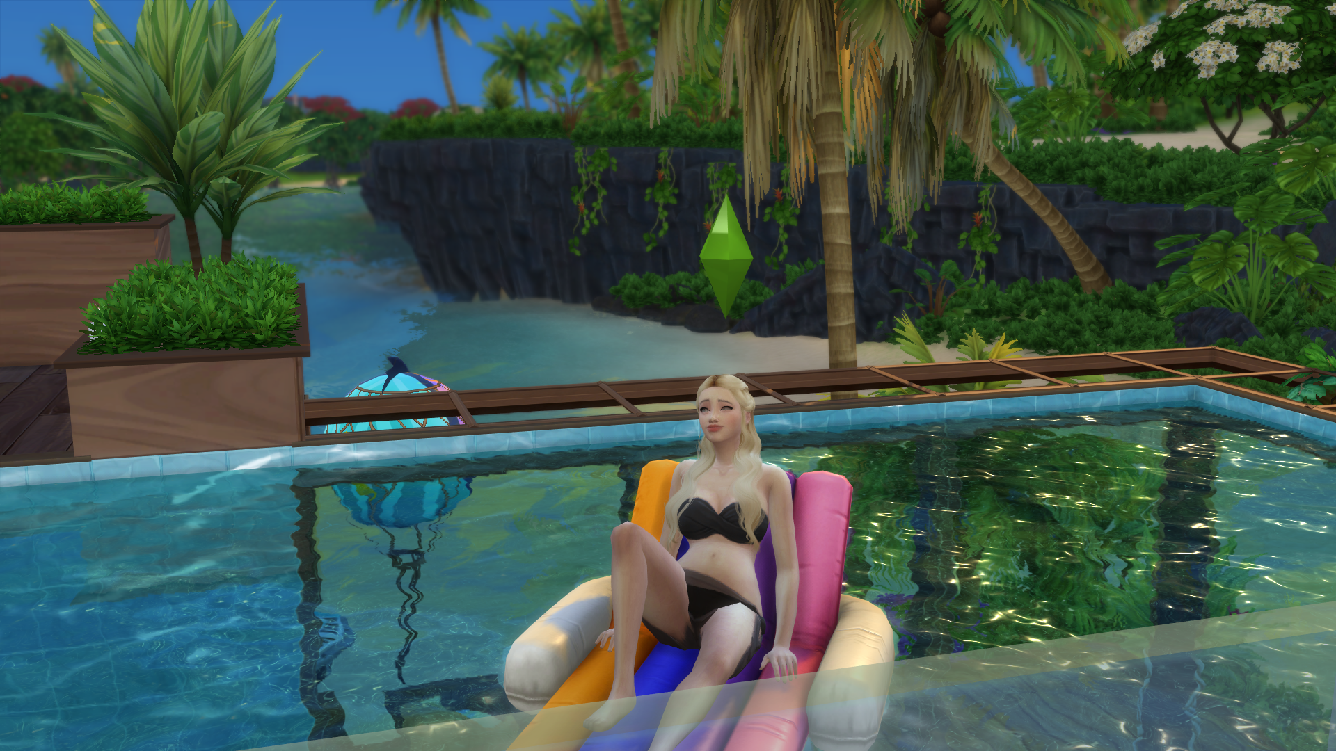 술라니에 오니 이렇게 여가 시간에는 수영장 튜브에서 둥둥 떠있는다.