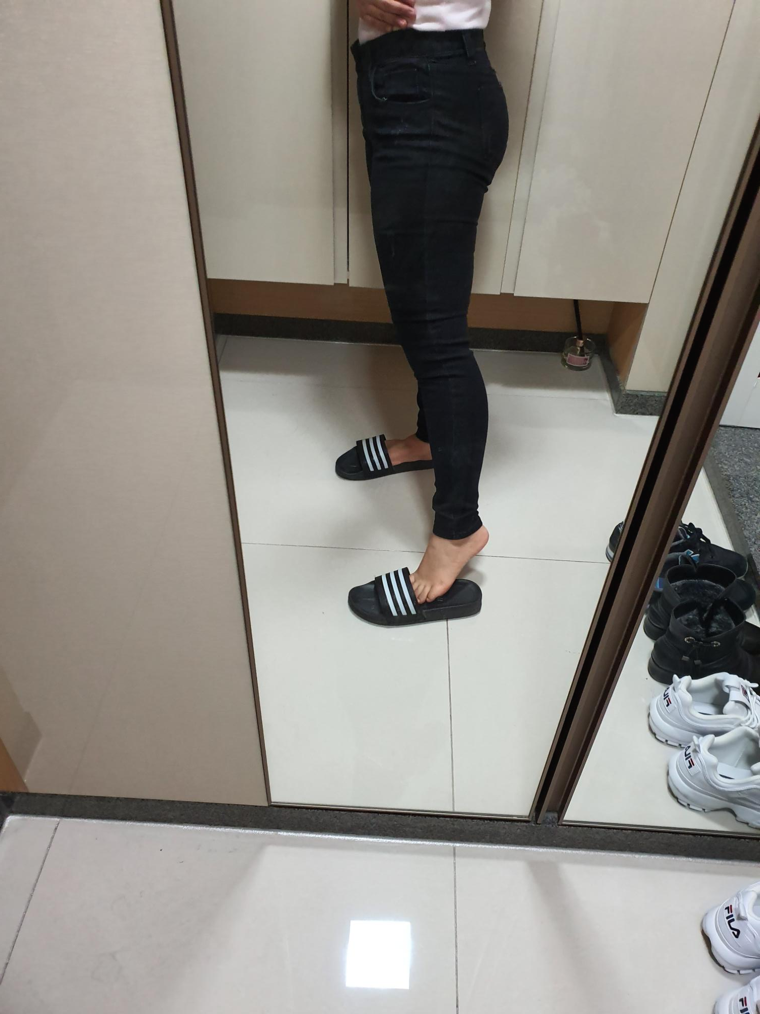 착용감, 움직임이 너무 편하고 감탄스러워서 청바지 입은 사진까지 찍었다.