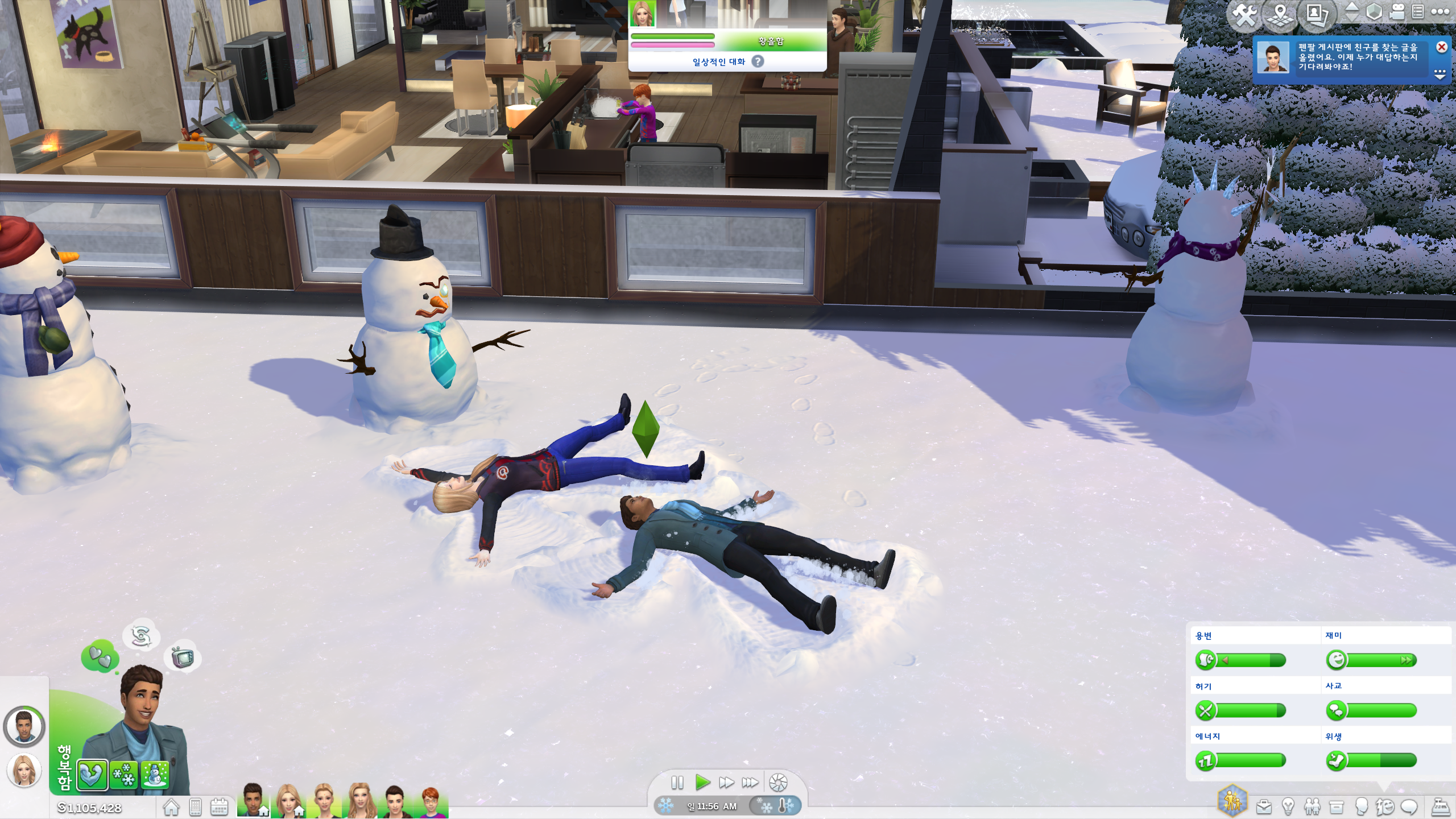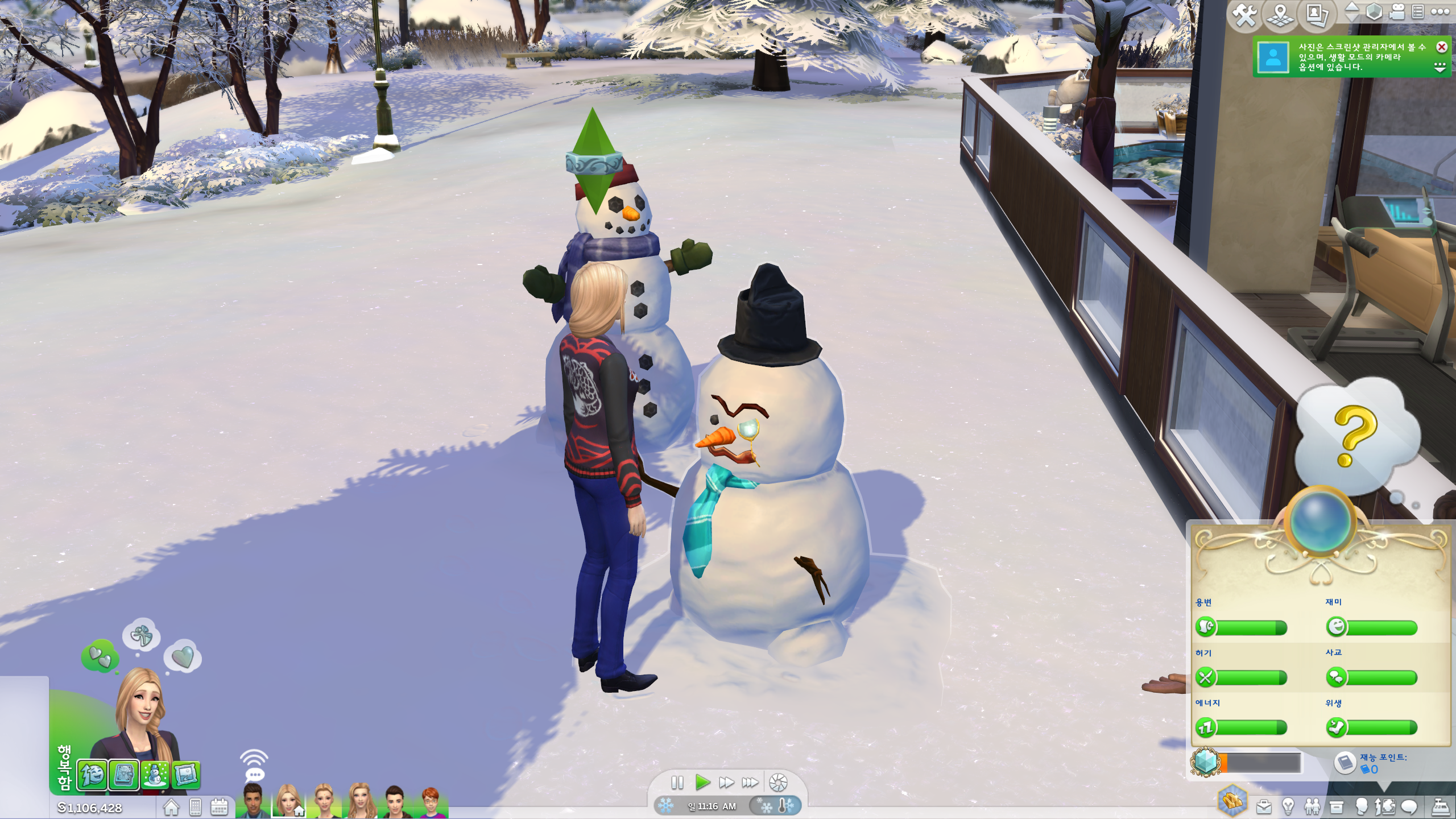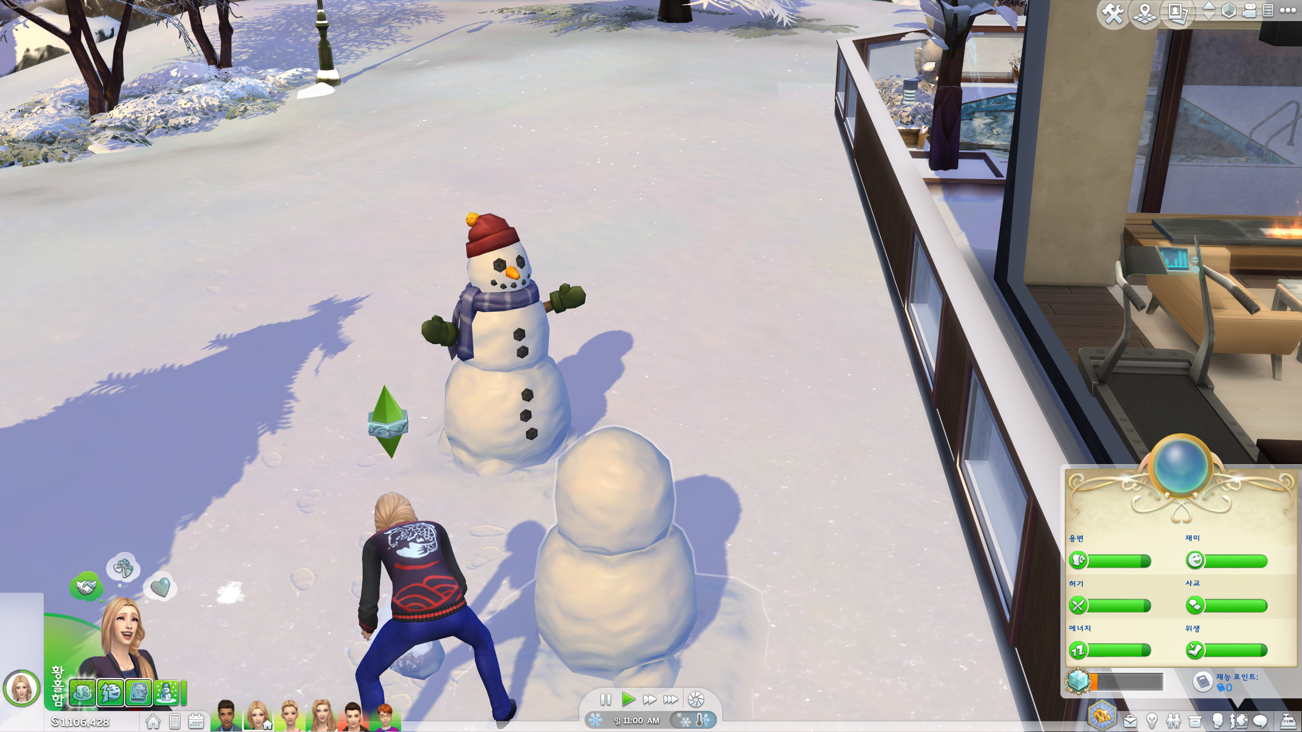 오랜만에 플레이하는거다보니 눈 내린 것도 새로워서 눈사람을 만들어주었다 :)