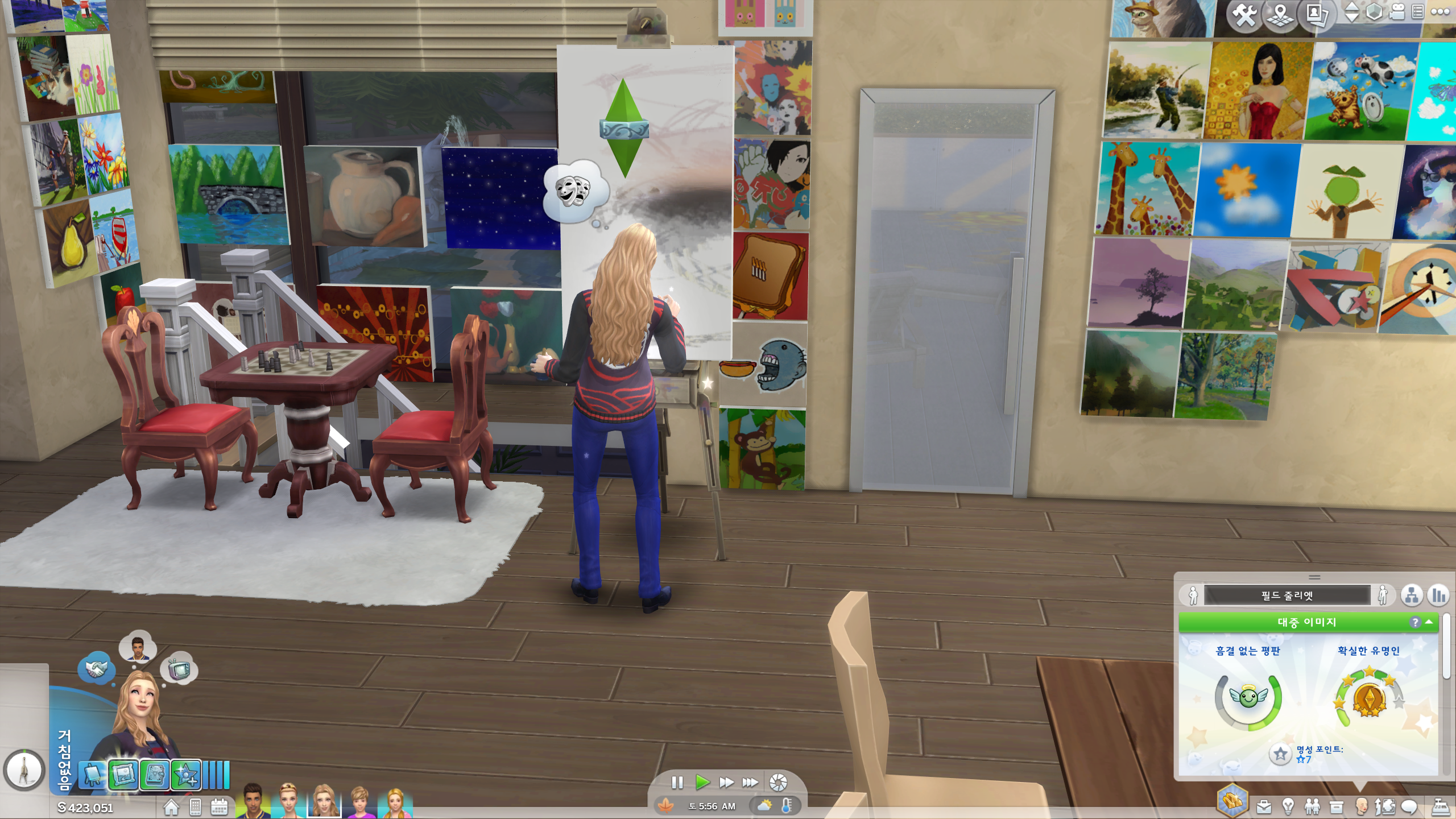 심즈를 하면서 유명인은 처음 해보는지라 이때 누려보자!!! 하면서 외출을 시켜보았다.
